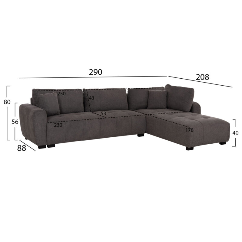 ΓΩΝΙΑΚΟΣ ΚΑΝΑΠΕΣ ΑΝΑΣΤΡΕΨΙΜΟΣ MEDEL HM3288.01 ΓΚΡΙ P.E. ΥΦΑΣΜΑ 290x208x80Υεκ Ο MEDEL είναι ένας βολικός και πρακτικός γωνιακός καναπές. Το χρώμα