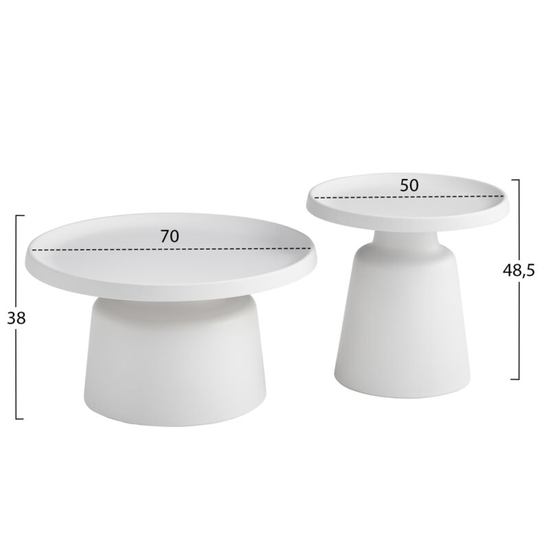 ΣΕΤ 2 ΤΡΑΠΕΖΙΑ ΣΑΛΟΝΙΟΥ RINKON2 HM18304.01 ΜΕΤΑΛΛΟ ΣΕ ΛΕΥΚΟ Φ50εκ & Φ70εκ