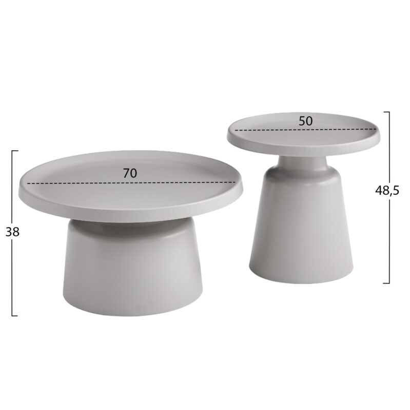 ΣΕΤ 2 ΤΡΑΠΕΖΙΑ ΣΑΛΟΝΙΟΥ RINKON2 HM18304.03 ΜΕΤΑΛΛΟ ΣΕ ΓΚΡΙ Φ50εκ & Φ70εκ
