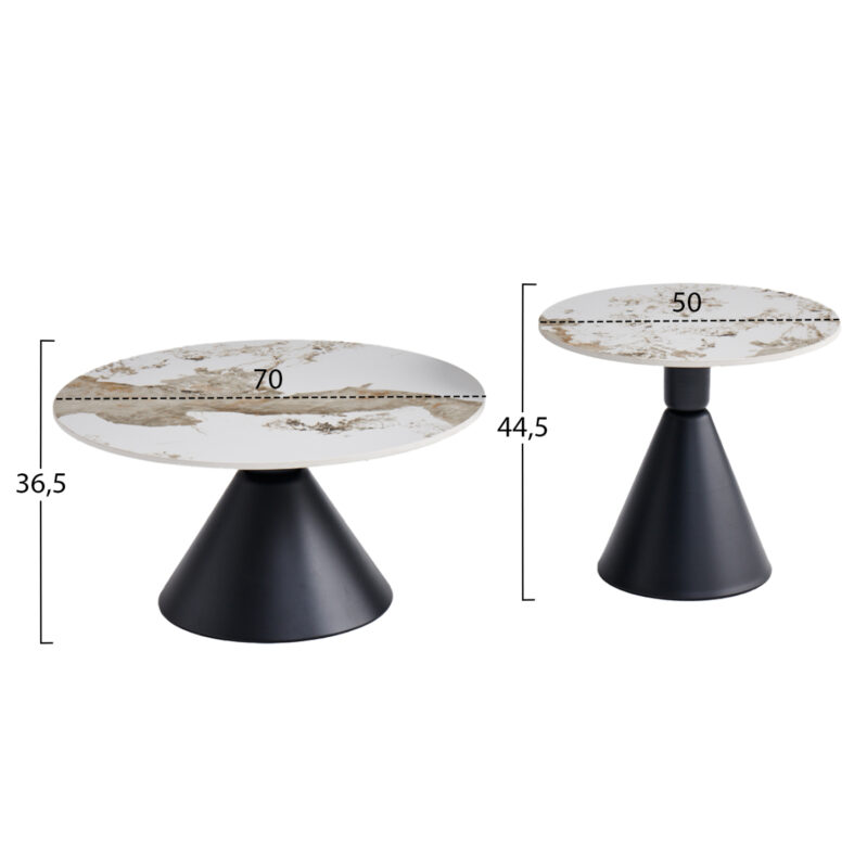 ΣΕΤ 2 ΤΡΑΠΕΖΙΑ ΣΑΛΟΝΙΟΥ JEN HM18305.02 ΜΕΤΑΛΛΟ ΜΑΥΡΟ-SINTERED STONE PANDORA Φ50εκ & Φ70εκ Αυτό το σετ τραπεζιών για το σαλόνι