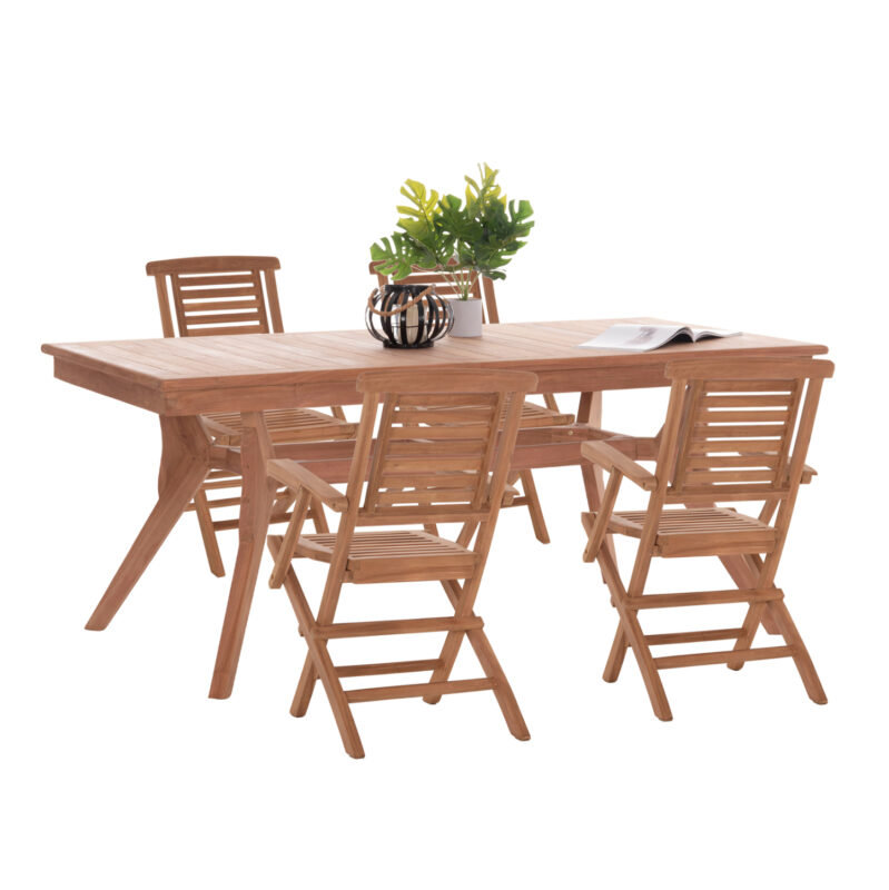ΣΕΤ ΤΡΑΠΕΖΑΡΙΑΣ WONDER HM21290 ΤΡΑΠΕΖΙ & 4 ΠΟΛΥΘΡΟΝΕΣ ΠΤΥΣΣΟΜΕΝΕΣ-ΤΕΑΚ Αυτό το Σετ τραπεζαρίας εξωτερικού χώρου διαθέτει ορθογώνιο τραπέζι και 4