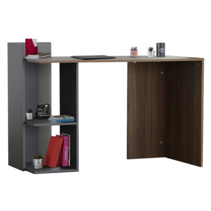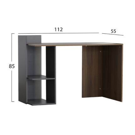 ΓΡΑΦΕΙΟ ΜΕΛΑΜΙΝΗΣ ΜΕ ΡΑΦΙΑ SYNDYA HM8994.01 ΚΑΡΥΔΙ- ΓΚΡΙ 112x55x85Y εκ. Μοντέρνο γραφείο με ενσωματωμένη βιβλιοθήκη, κατασκευασμένο από μελαμίνη υψηλών προδιαγραφών,