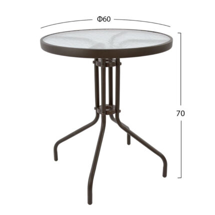 ΤΡΑΠΕΖΙ LIMA Φ60×70Υεκ. ΚΑΦΕ ΜΕΤΑΛΛΙΚΟ ΜΕ ΓΥΑΛΙΝΗ ΕΠΙΦΑΝΕΙΑ HM5079.02 Τραπέζι εξωτερικού χώρου μεταλλικό σε καφέ απόχρωση με γυαλί ασφαλείας στην