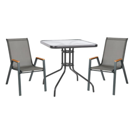 ΣΕΤ ΤΡΑΠΕΖΑΡΙΑΣ 3ΤΜΧ FIGO HM10730.01– 2 ΚΑΡΕΚΛΕΣ & ΤΕΤΡΑΓΩΝΟ ΤΡΑΠΕΖΙ 60×60εκ ΓΚΡΙ Αυτό το μικρό Σετ τραπεζαρίας εξωτερικού χώρου διαθέτει