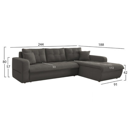 ΚΑΝΑΠΕΣ ΚΡΕΒΑΤΙ ΔΕΞΙΑ ΓΩΝΙΑ KANSO HM3338.01R ΓΚΡΙ ΥΦΑΣΜΑ 244x188x80Υεκ Καναπές κρεβάτι Δεξιά Γωνία KANSO με Γκρι Υφασμάτινη Επένδυση Ο γωνιακός