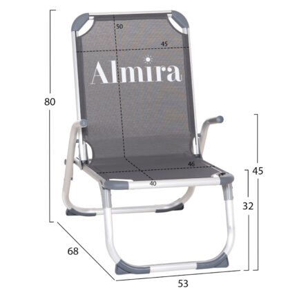 ΚΑΡΕΚΛΑΚΙ ΠΑΡΑΛΙΑΣ ΑΛΟΥΜΙΝΙΟΥ ΒΑΡ.ΤΥΠΟΥ ΥΠΕΡΥΨΩΜΕΝΟ ALMIRA HM6431.10 ΓΚΡΙ 53x68x80Υεκ