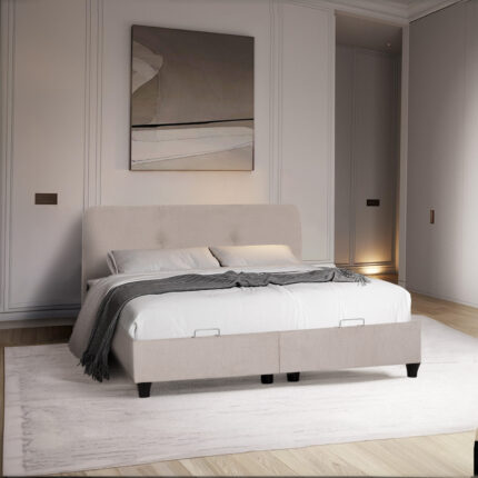 ΚΡΕΒΑΤΙ ΜΕ ΑΠΟΘ.ΧΩΡΟ MOLEN HM730.03 ΜΠΕΖ ΜΠΟΥΚΛΕ ΥΦΑΣΜΑ–ΓΙΑ ΣΤΡΩΜΑ 160×200εκ Το διπλό κρεβάτι MOLEN για στρώμα 160×200εκ είναι νέα προσθήκη