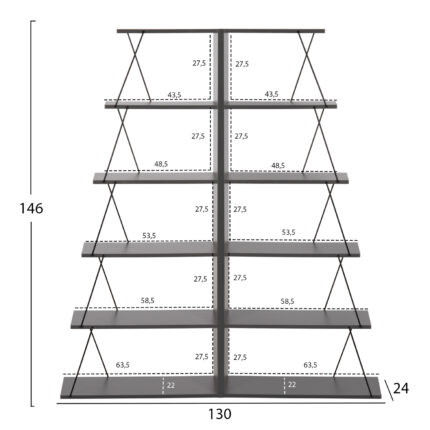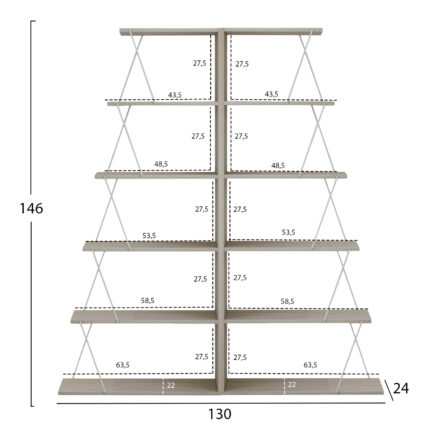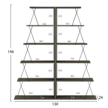 ΒΙΒΛΙΟΘΗΚΗ TARS HM2240.20 ΓΚΡΙ ΜΕΛΑΜΙΝΗ-ΜΑΥΡΕΣ ΜΕΤΑΛΛΙΚΕΣ ΒΕΡΓΕΣ 84x24x157Υεκ.