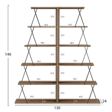 ΒΙΒΛΙΟΘΗΚΗ TARS HM2240.14 ΦΥΣΙΚΟ ΟΑΚ ΜΕΛΑΜΙΝΗ-ΜΑΥΡΕΣ ΜΕΤΑΛΛΙΚΕΣ ΒΕΡΓΕΣ 84x24x157Υεκ.