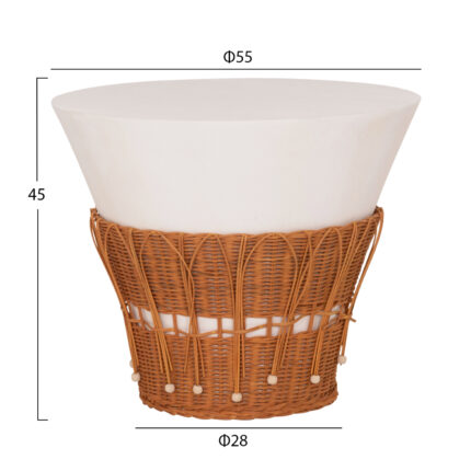 ΤΡΑΠΕΖΙ ΒΟΗΘΗΤΙΚΟ PERRAL HM18164.02S FIBER CEMENT ΛΕΥΚΟ-ΦΥΣΙΚΟ RATTAN–Φ42×36Υεκ Το βοηθητικό τραπεζάκι PERRAL είναι στρογγυλό σε σχήμα ανάποδου κώνου με όμορφη