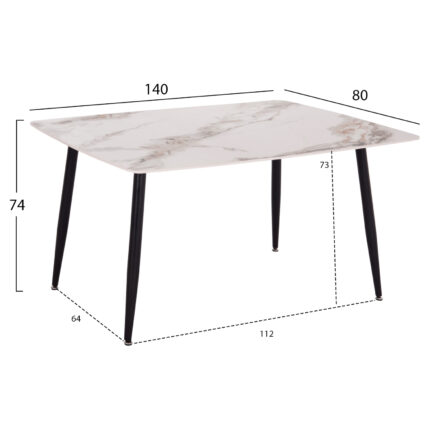 ΤΡΑΠΕΖΙ RAVEN HM18149.01 ΚΕΡΑΜΙΚΟ TOP ΜΕ ΟΨΗ ΛΕΥΚΟ ΜΑΡΜΑΡΟ 140x80x74Υεκ.