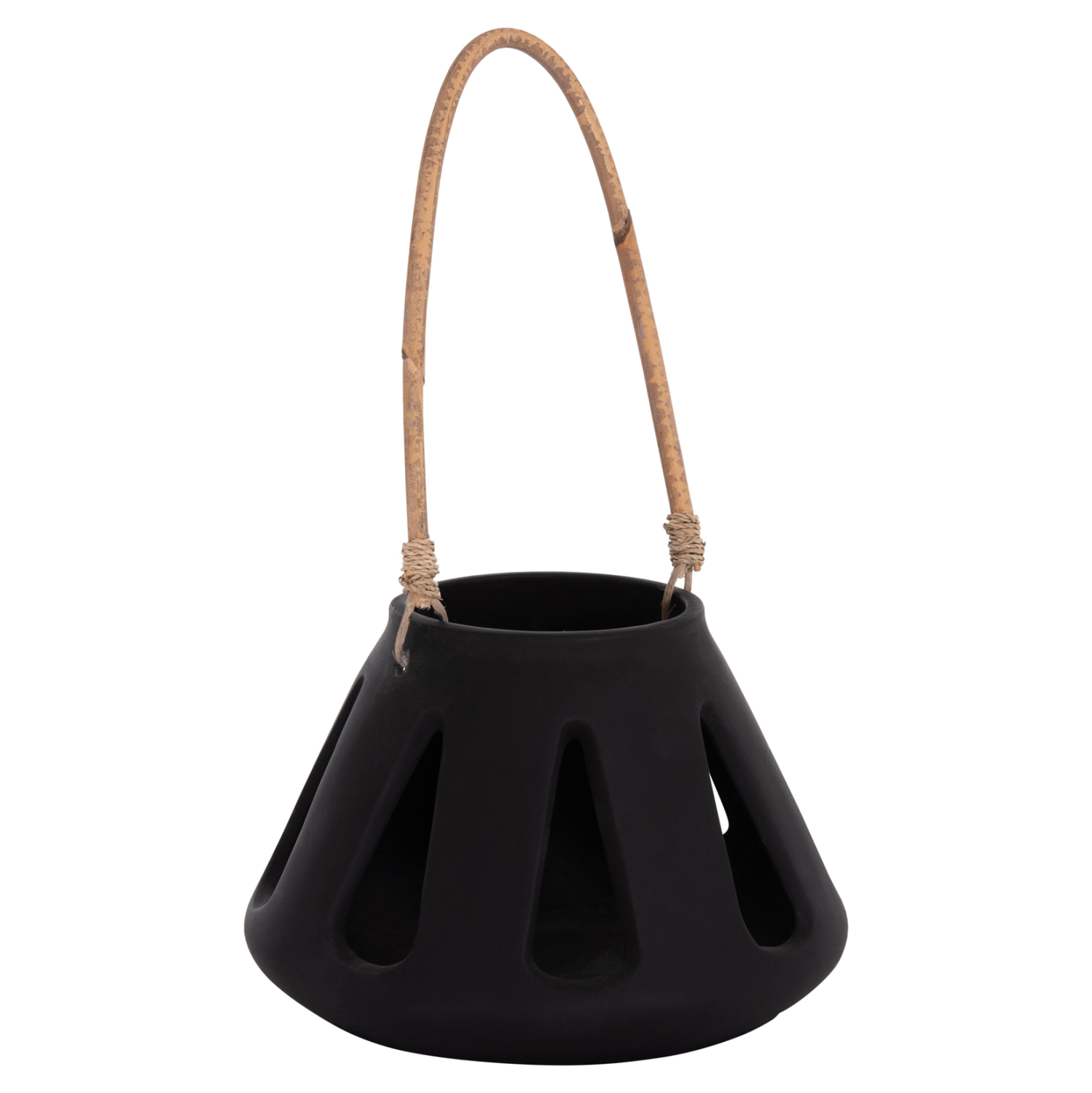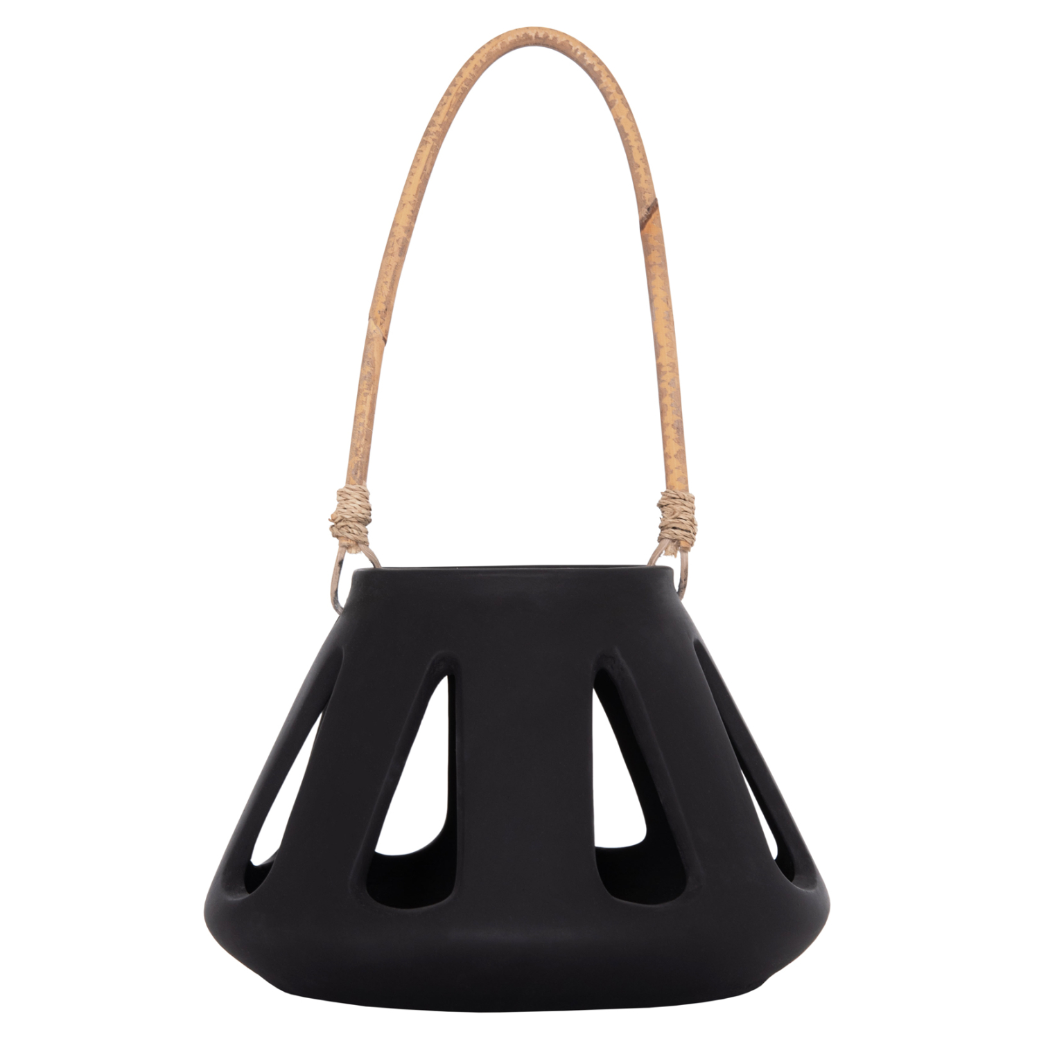 Το χαμηλό επιτραπέζιο διακοσμητικό φανάρι ERANTYL είναι κατασκευασμένο από Fiber Cement σε ΜΑΥΡΟ χρώμα και διαθέτει χερούλι από φυσικό rattan για εύκολη μεταφορά. Το Fiber Cement ΔΕΝ είναι εύφλεκτο, που σημαίνει ότι μπορείτε να τοποθετήσετε αρκετά είδη κεριών, ωστόσο συνιστάται ΠΑΝΤΑ αυτό να γίνεται με μεγάλη προσοχή.