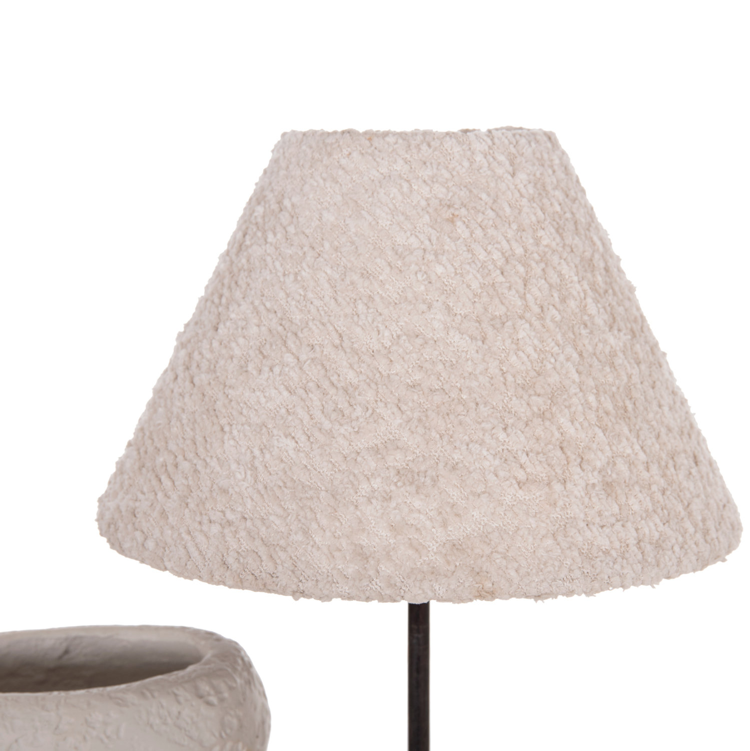 -Το καπέλο διαθέτει εσωτερική κατασκευή από PVC για σταθερότητα και σωστή διάχυση του φωτός, ενώ εξωτερικά επενδύεται με ύφασμα τύπου “teddy” σε αντίστοιχη απόχρωση. Η υφή αυτή δημιουργεί ένα ζεστό, απαλό φως και ενισχύει τη συνολική cozy αίσθηση.