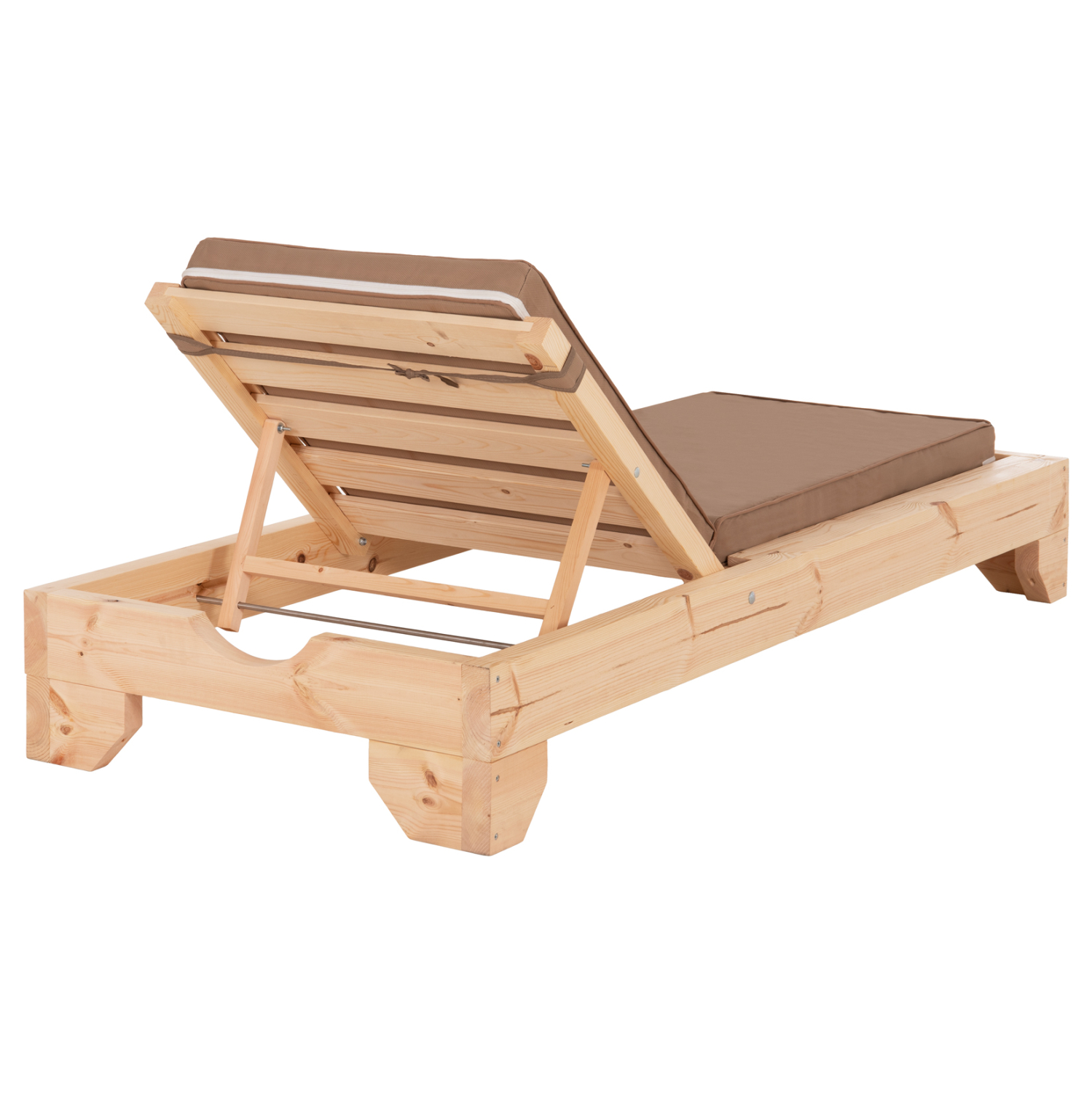 -Ολόκληρη η ξαπλώστρα έχει κατασκευαστεί από ξύλο πεύκου με εμποτισμό και επιπλέον στρώση με βερνίκι νερού. Το πεύκο είναι ένα μαλακό, λευκό ή ανοιχτό κίτρινο ξύλο το οποίο είναι ελαφρύ σε βάρος με ευθύγραμμα νερά ξύλου. Αντέχει στη συρρίκνωση, διόγκωση και κάμψη. Ο εμποτισμός υπό την ευρεία έννοια είναι ο χρωματισμός του ξύλου (συνήθως βερνίκια) με την μέθοδο της εμβάπτισης.