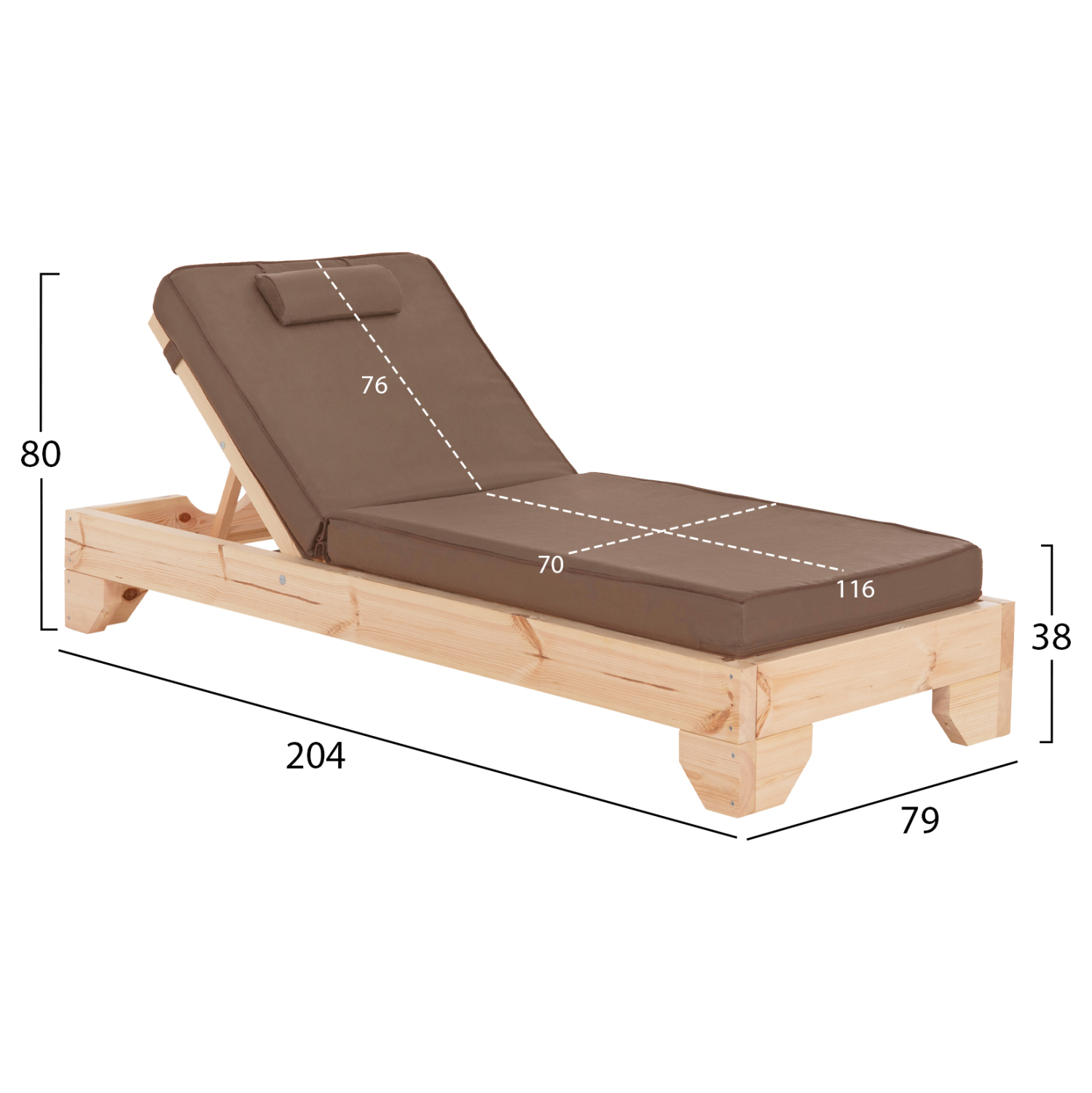 -Το μαξιλάρι/στρώμα με μαξιλαράκι κεφαλής που συνοδεύει την ξαπλώστρα είναι από αφρό μέτριας σκληρότητας ενώ το κάλυμμα είναι από textilene σε ΜOKA χρώμα. Δένεται στην ξαπλώστρα με κορδόνια.