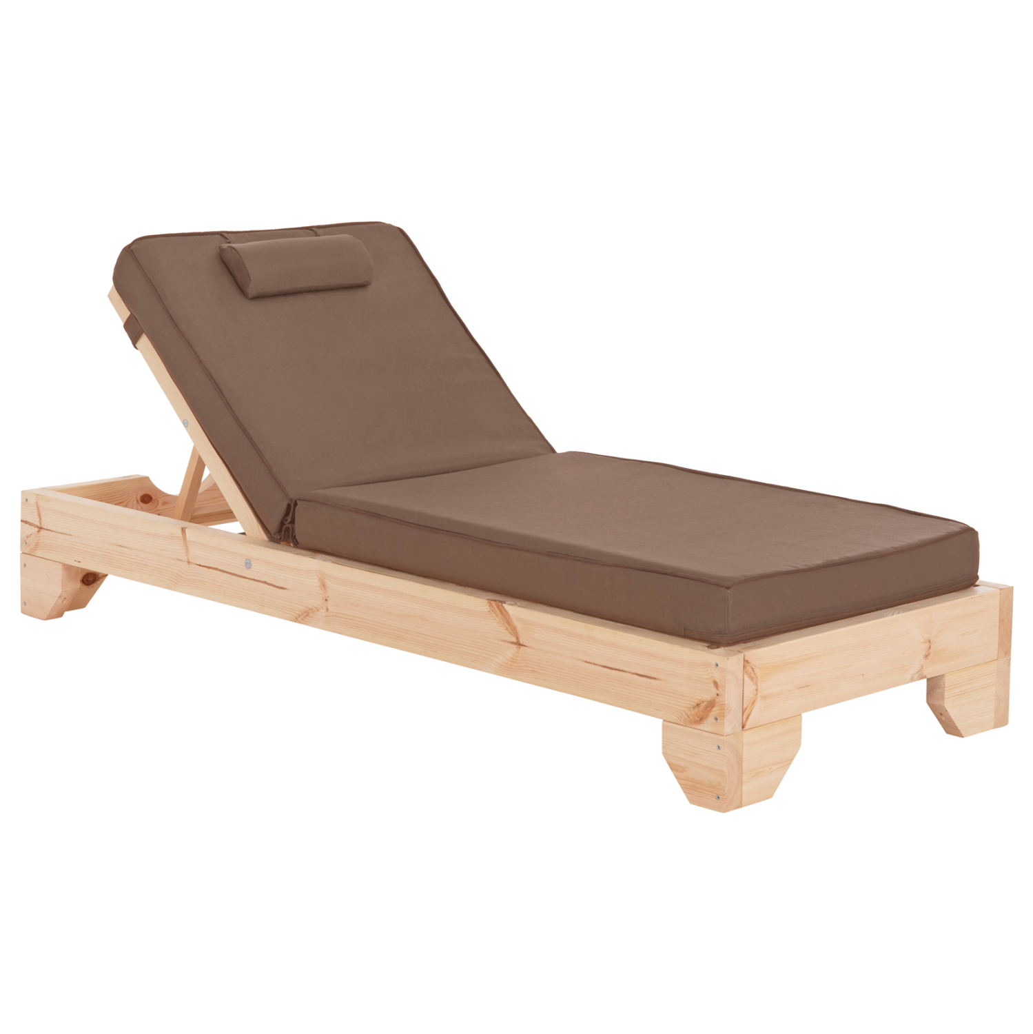 -Ολόκληρη η ξαπλώστρα έχει κατασκευαστεί από ξύλο πεύκου με εμποτισμό και επιπλέον στρώση με βερνίκι νερού. Το πεύκο είναι ένα μαλακό, λευκό ή ανοιχτό κίτρινο ξύλο το οποίο είναι ελαφρύ σε βάρος με ευθύγραμμα νερά ξύλου. Αντέχει στη συρρίκνωση, διόγκωση και κάμψη. Ο εμποτισμός υπό την ευρεία έννοια είναι ο χρωματισμός του ξύλου (συνήθως βερνίκια) με την μέθοδο της εμβάπτισης.