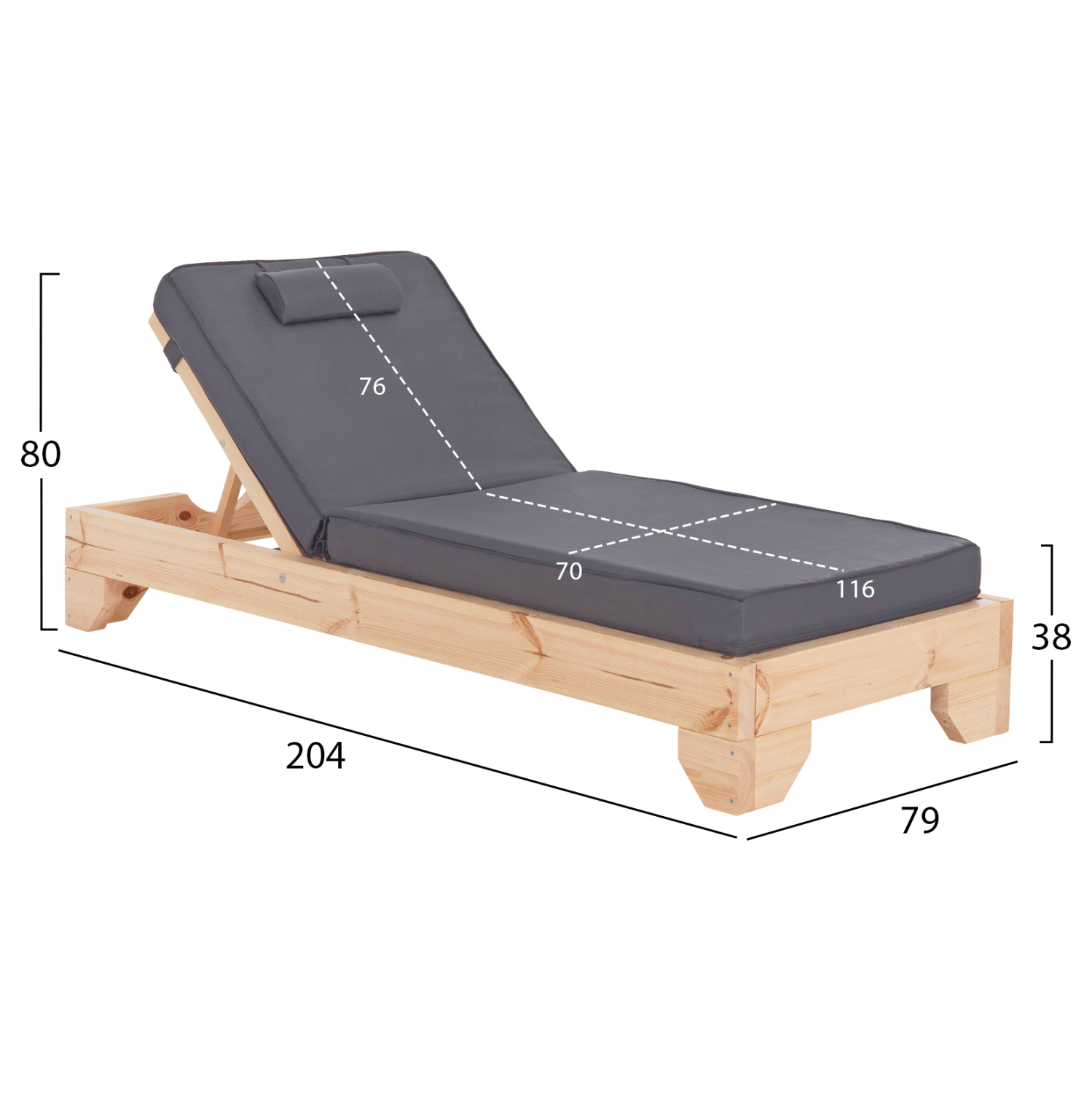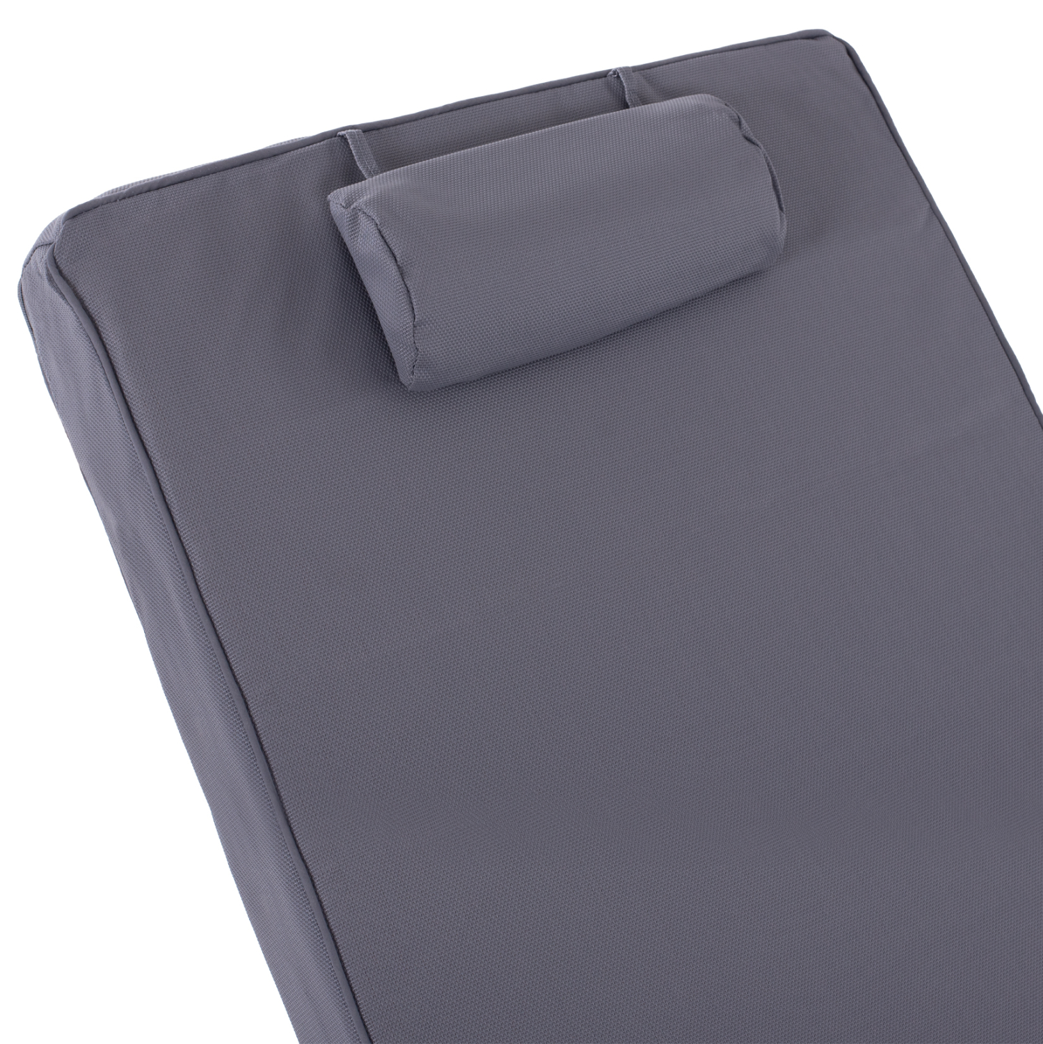 -Το μαξιλάρι/στρώμα με μαξιλαράκι κεφαλής που συνοδεύει την ξαπλώστρα είναι από αφρό μέτριας σκληρότητας ενώ το κάλυμμα είναι από textilene σε ΓΚΡΙ χρώμα. Δένεται στην ξαπλώστρα με κορδόνια.