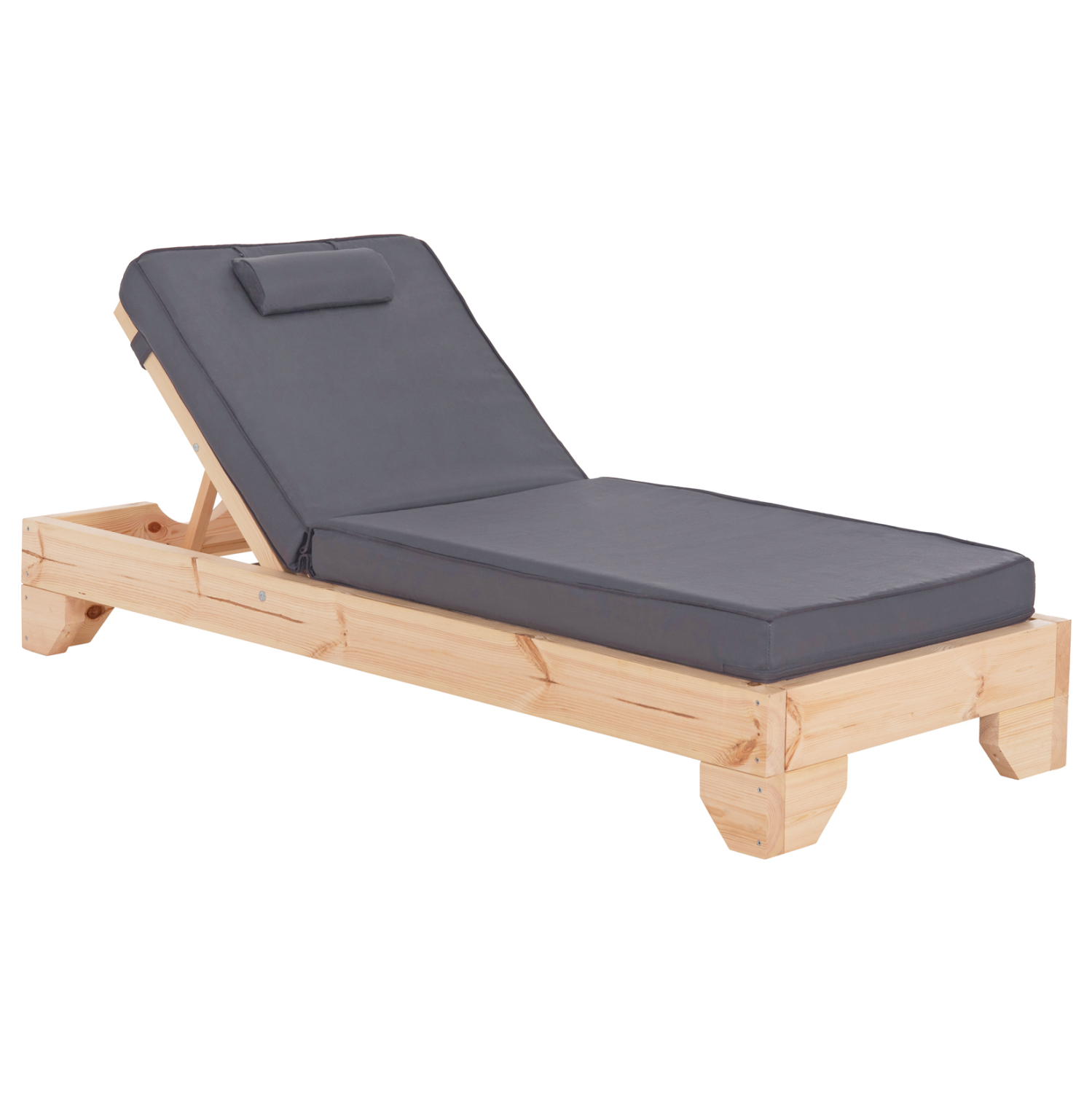 -Ολόκληρη η ξαπλώστρα έχει κατασκευαστεί από ξύλο πεύκου με εμποτισμό και επιπλέον στρώση με βερνίκι νερού. Το πεύκο είναι ένα μαλακό, λευκό ή ανοιχτό κίτρινο ξύλο το οποίο είναι ελαφρύ σε βάρος με ευθύγραμμα νερά ξύλου. Αντέχει στη συρρίκνωση, διόγκωση και κάμψη. Ο εμποτισμός υπό την ευρεία έννοια είναι ο χρωματισμός του ξύλου (συνήθως βερνίκια) με την μέθοδο της εμβάπτισης.