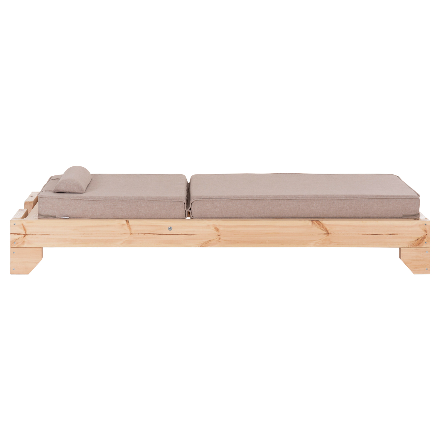 -Το μαξιλάρι που συνοδεύει την ξαπλώστρα είναι από αφρό μέτριας σκληρότητας ενώ το κάλυμμα είναι από ύφασμα OLEFIN σε ΜΠΕΖ χρώμα. Δένεται στην ξαπλώστρα με κορδόνια.
