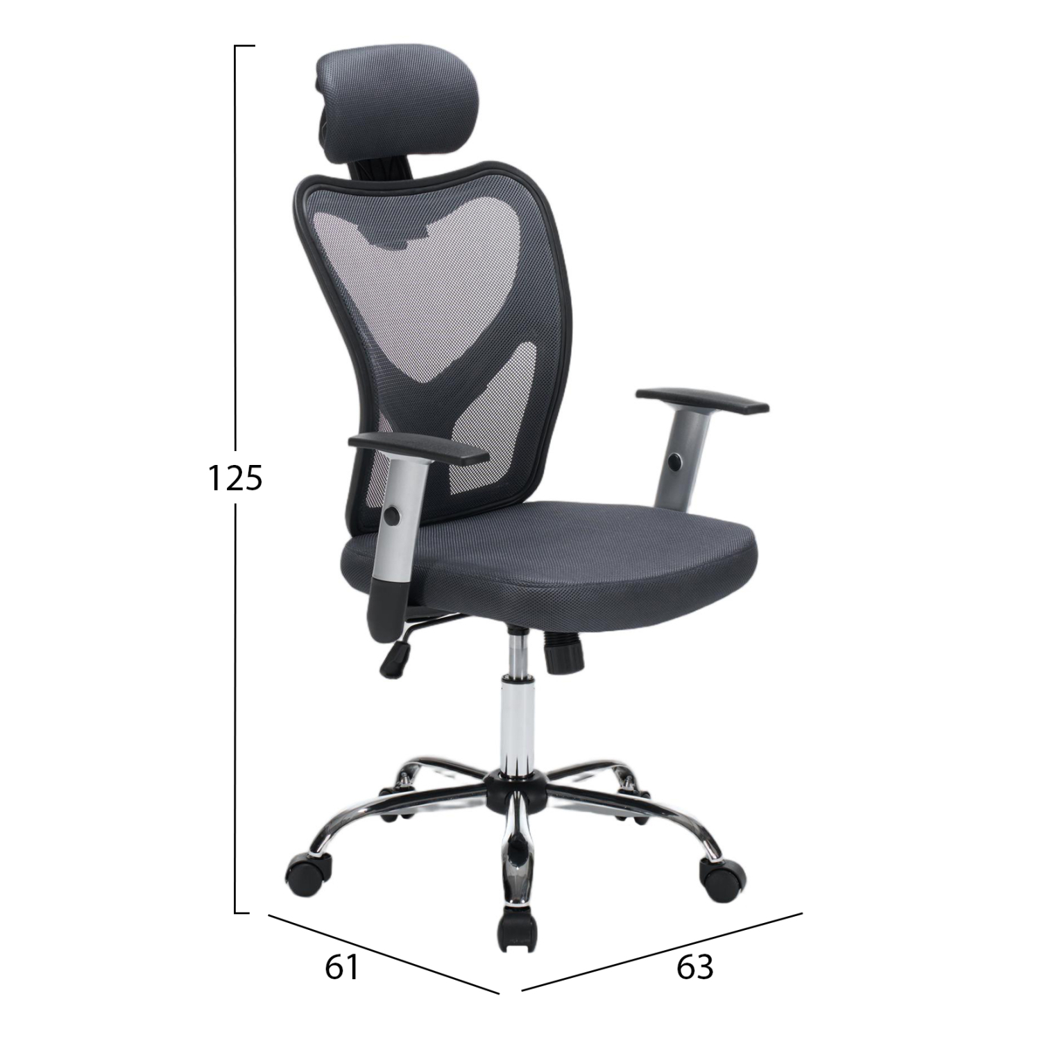 ΚΑΡΕΚΛΑ ΓΡΑΦΕΙΟΥ CUORE HM1207.02 ΜΑΥΡΟΣ ΣΚΕΛΕΤΟΣ-ΓΚΡΙ MESH 63x61x125Υεκ