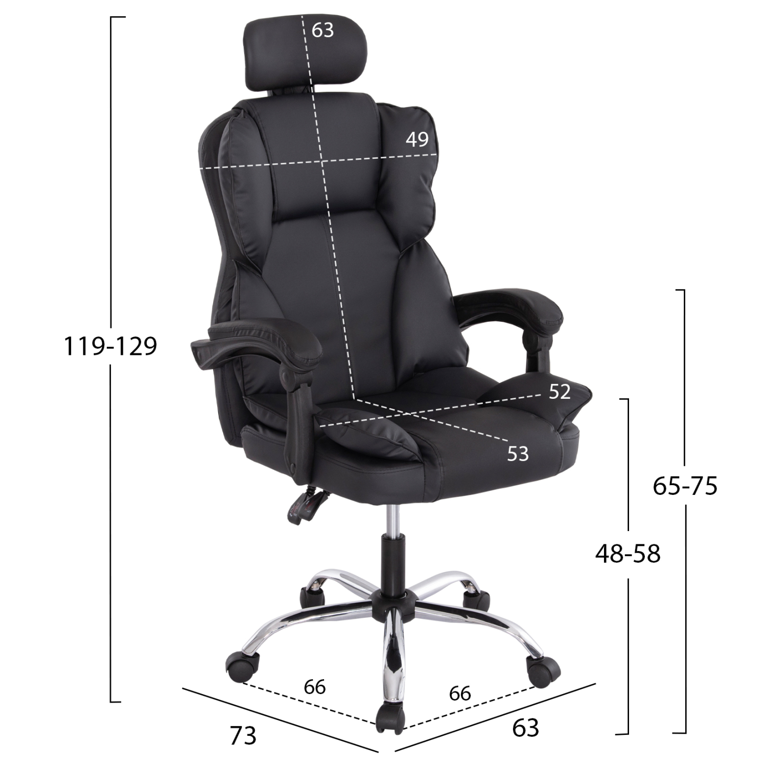 ΚΑΡΕΚΛΑ ΓΡΑΦΕΙΟΥ OCTAVIUS HM1202 ΜΑΥΡΟ PVC-ΜΕΤΑΛ.ΧΡΩΜΙΟ ΒΑΣΗ 63x73x129Υεκ
