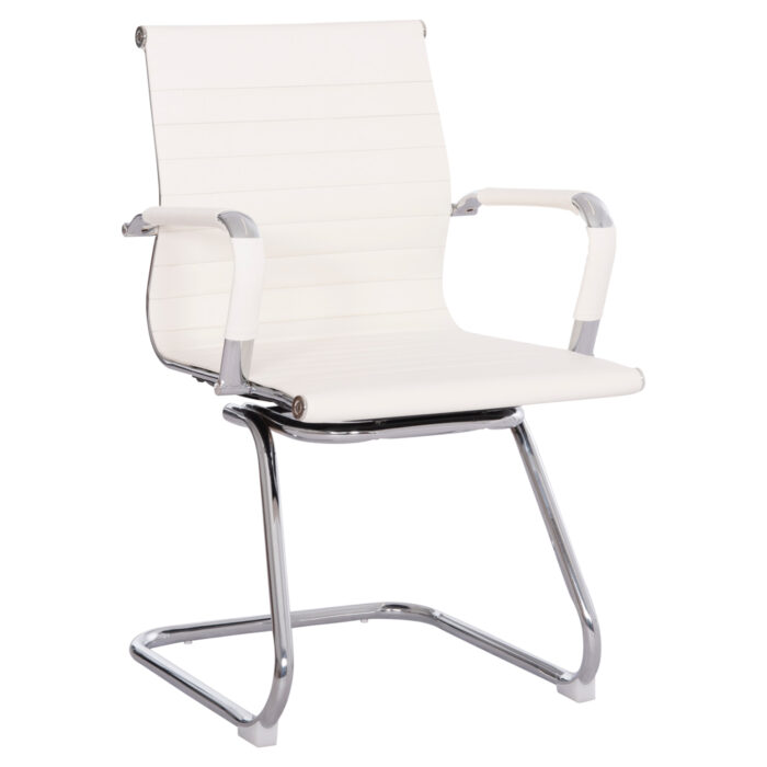 Η καρέκλα επισκέπτη/συνεργασίας BOSS θα τραβήξει όλα τα βλέμματα! Οι λεπτές μεταλλικές και ανατομικές καμπύλες της και ο συνδυασμός του ΛΕΥΚΟΥ PU δέρματος με τις οριζόντιες ραφές, με τα μεταλλικά χρωμιωμένα μέρη θα προκαλέσει τον θαυμασμό και μόνο. Τα μπράτσα είναι και αυτά ντυμένα με ΛΕΥΚΟ PU δέρμα. Η πλάτη είναι αναπαυτική και τετραγωνισμένη ενώ το κάθισμα είναι επίπεδο.