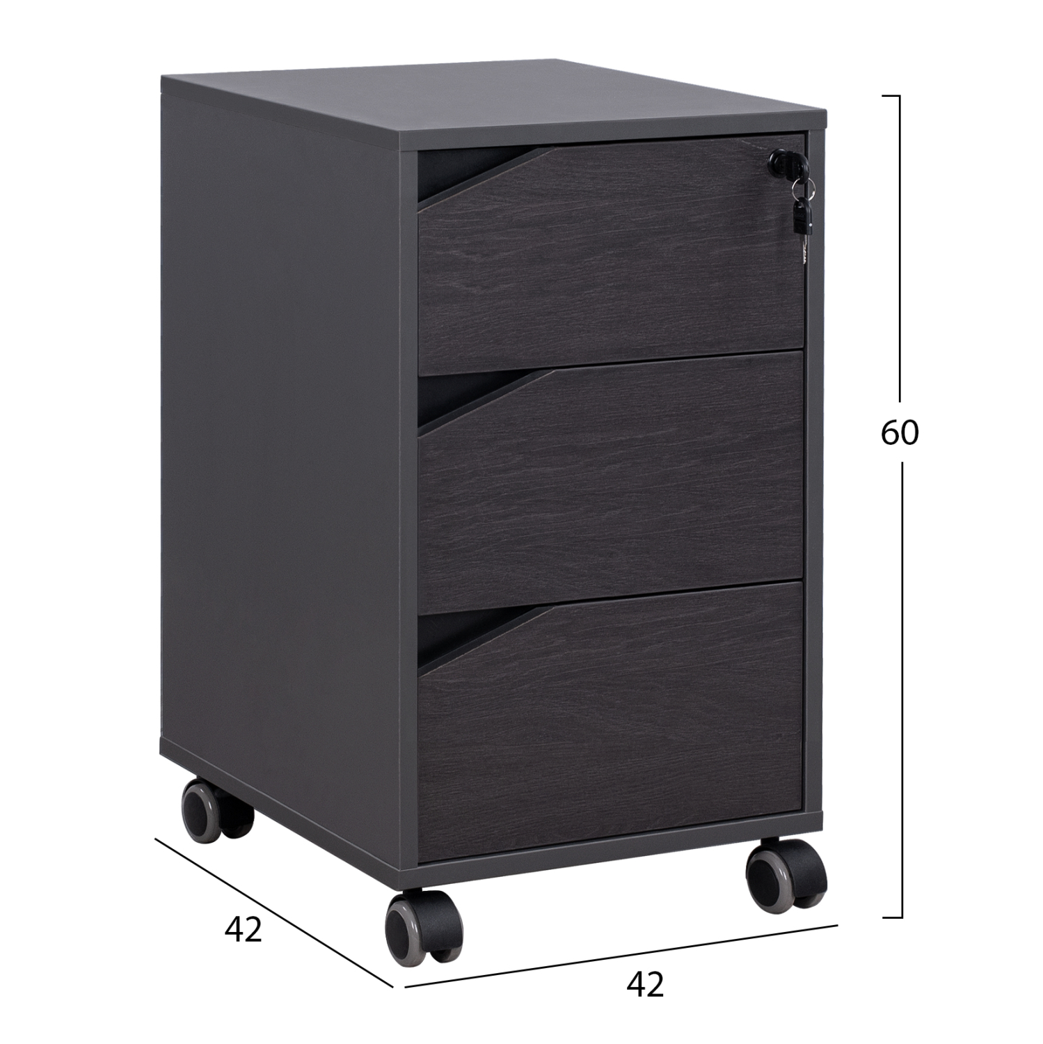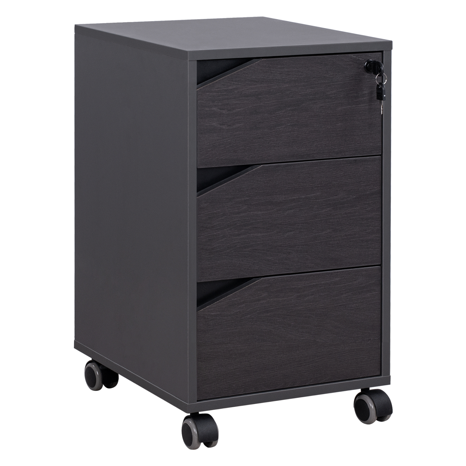 Τροχήλατη συρταριέρα γραφείου από μελαμίνη σε γκρι και βέγγε απόχρωση, με κλειδαριά, σε μοντέρνο design.