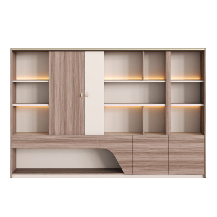 Βιβλιοθήκη Γραφείου SUPERON με LED Φωτισμό και Διχρωμία Φυσικού Ξύλου – Μπεζ