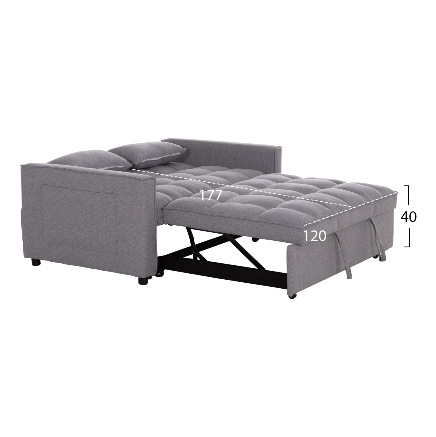 Ο διθέσιος καναπές BORG είναι ποιοτικός και πρακτικός. Έχει πολύ χαμηλά πόδια ενώ τα μπράτσα του διαθέτουν θήκες («τσέπες») στο εξωτερικό τους για πρόχειρη τοποθέτηση διάφορων αντικειμένων. Είναι επενδυμένος με ποιοτικό ύφασμα σε ΓΚΡΙ χρώμα και συνοδεύεται από δύο πλαϊνά μαξιλαράκια. Αυτό που τον κάνει όμως να ξεχωρίζει είναι ότι μετατρέπεται σε κρεβάτι πολύ εύκολα τραβώντας προς τα έξω με δύο ιμάντες το αναδιπλούμενο κρεβάτι που βρίσκεται κάτω από το κάθισμα.