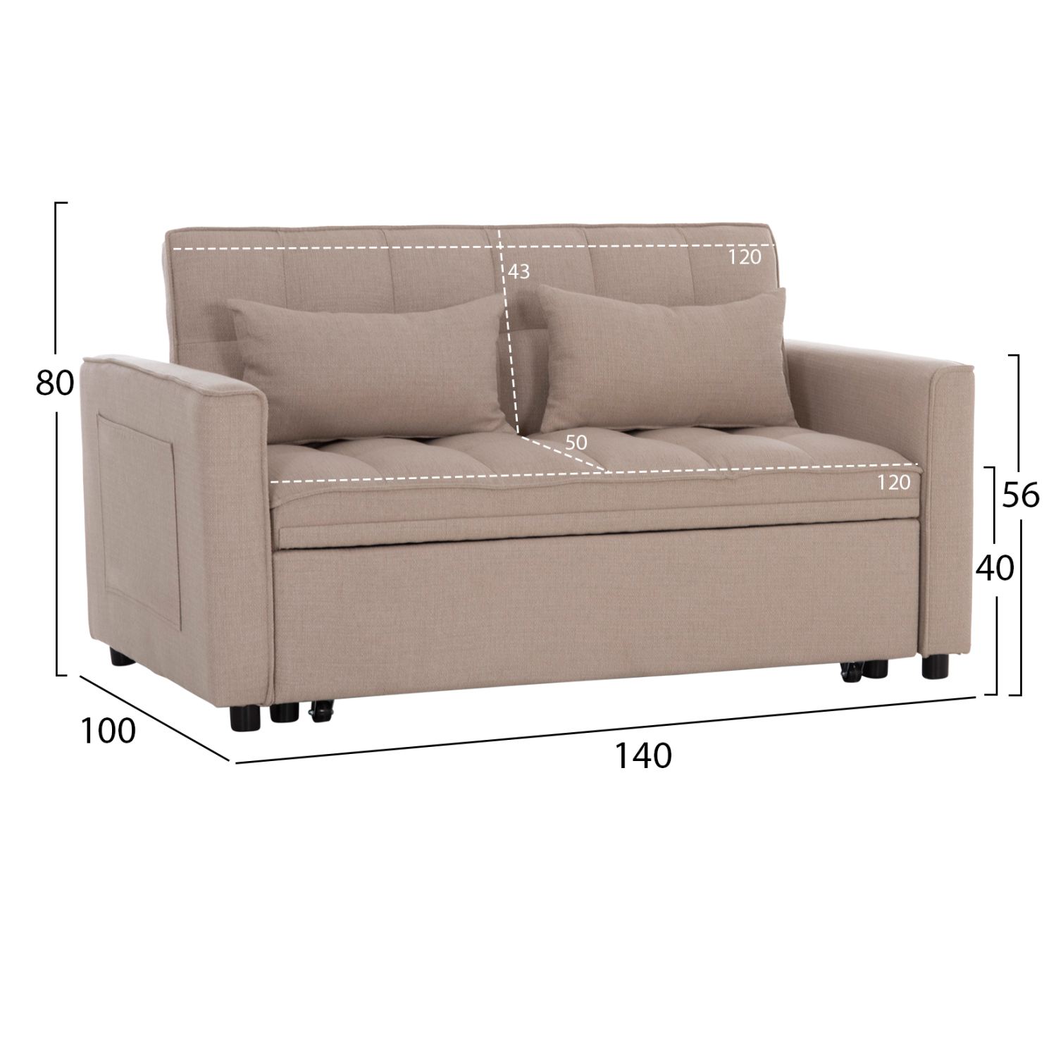 Ο διθέσιος καναπές BORG είναι ποιοτικός και πρακτικός. Έχει πολύ χαμηλά πόδια ενώ τα μπράτσα του διαθέτουν θήκες («τσέπες») στο εξωτερικό τους για πρόχειρη τοποθέτηση διάφορων αντικειμένων. Είναι επενδυμένος με ποιοτικό ύφασμα σε ΜΠΕΖ χρώμα και συνοδεύεται από δύο πλαϊνά μαξιλαράκια. Αυτό που τον κάνει όμως να ξεχωρίζει είναι ότι μετατρέπεται σε κρεβάτι πολύ εύκολα τραβώντας προς τα έξω με δύο ιμάντες το αναδιπλούμενο κρεβάτι που βρίσκεται κάτω από το κάθισμα.