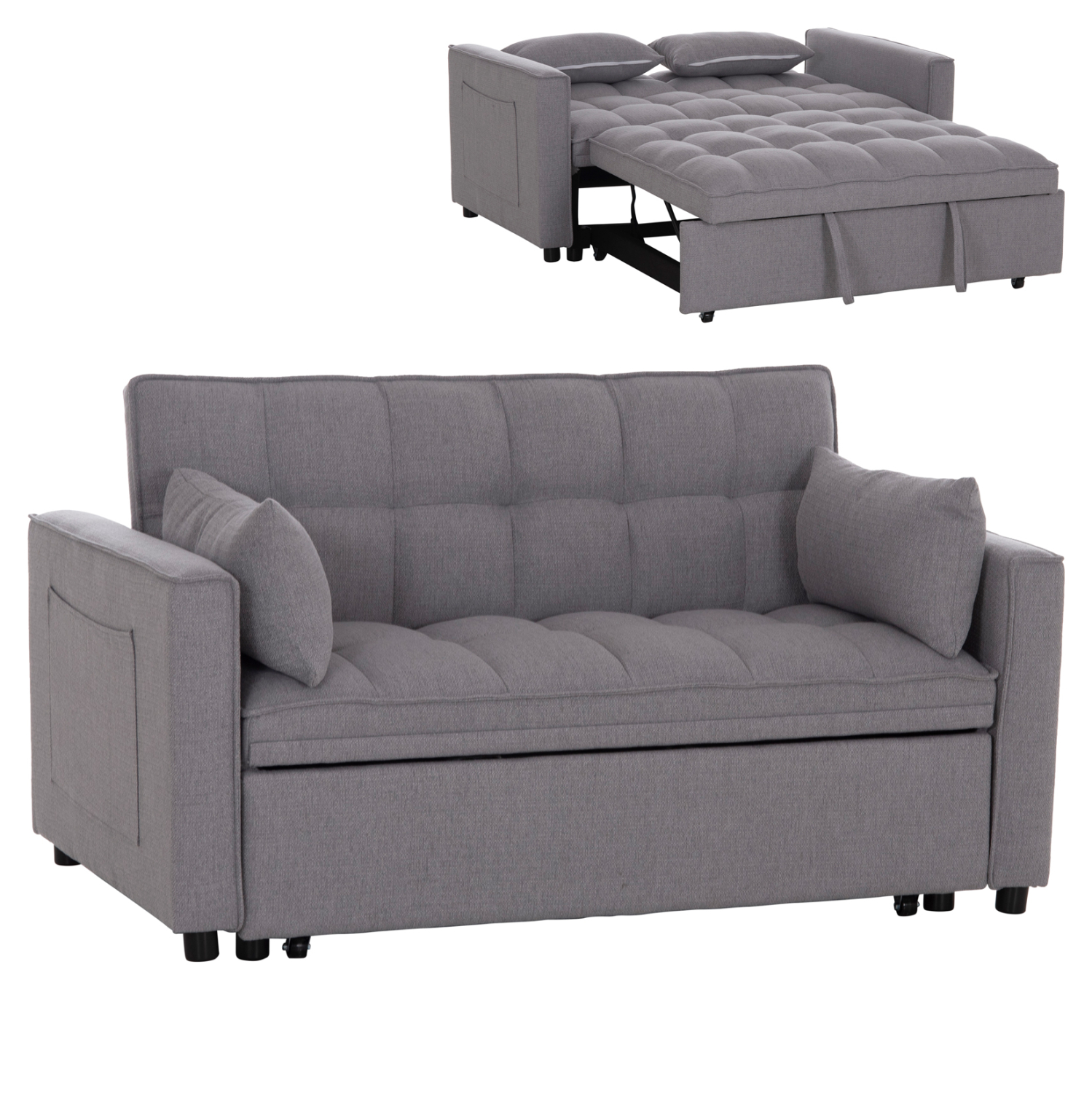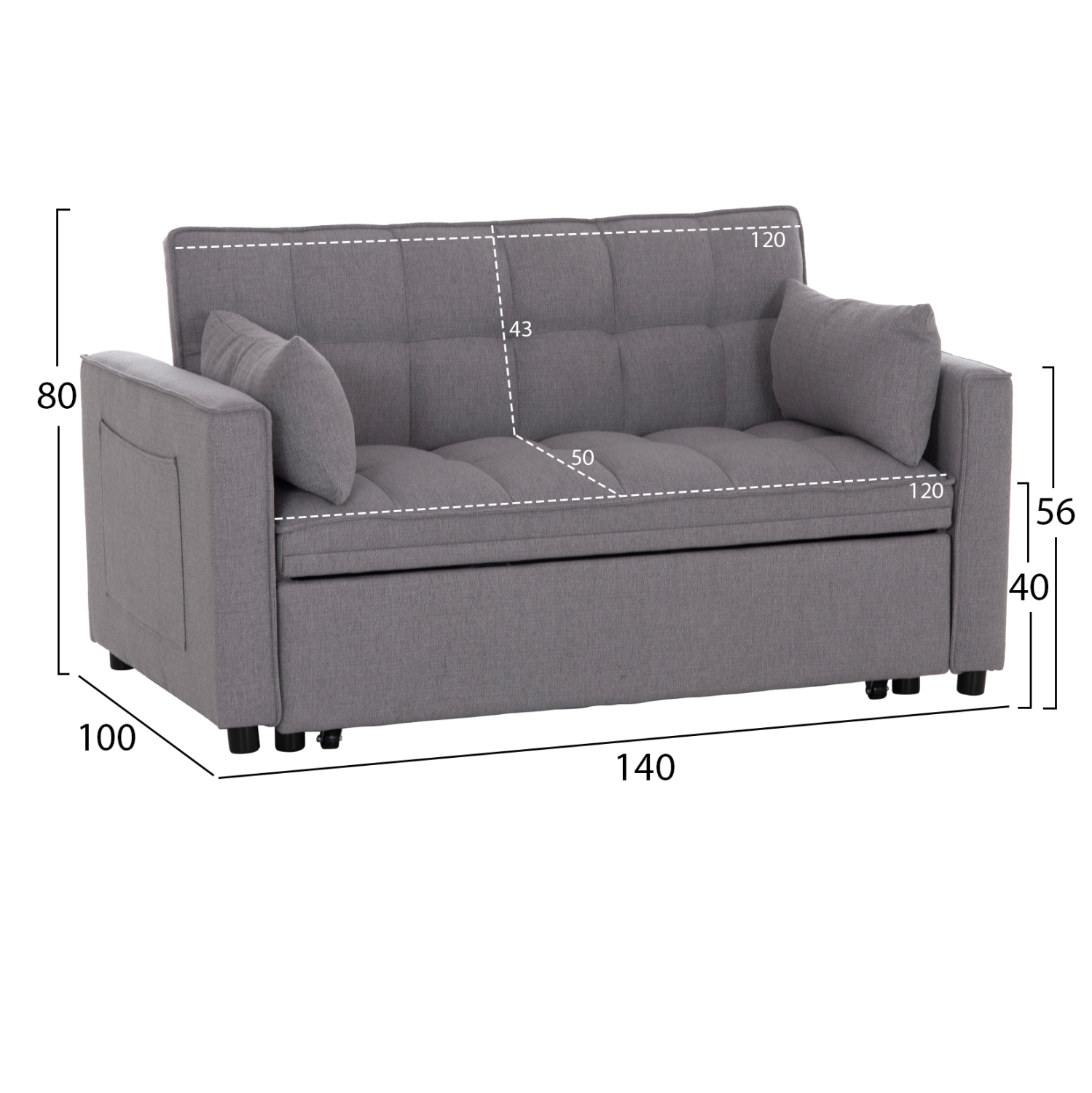Ο διθέσιος καναπές BORG είναι ποιοτικός και πρακτικός. Έχει πολύ χαμηλά πόδια ενώ τα μπράτσα του διαθέτουν θήκες («τσέπες») στο εξωτερικό τους για πρόχειρη τοποθέτηση διάφορων αντικειμένων. Είναι επενδυμένος με ποιοτικό ύφασμα σε ΓΚΡΙ χρώμα και συνοδεύεται από δύο πλαϊνά μαξιλαράκια. Αυτό που τον κάνει όμως να ξεχωρίζει είναι ότι μετατρέπεται σε κρεβάτι πολύ εύκολα τραβώντας προς τα έξω με δύο ιμάντες το αναδιπλούμενο κρεβάτι που βρίσκεται κάτω από το κάθισμα.