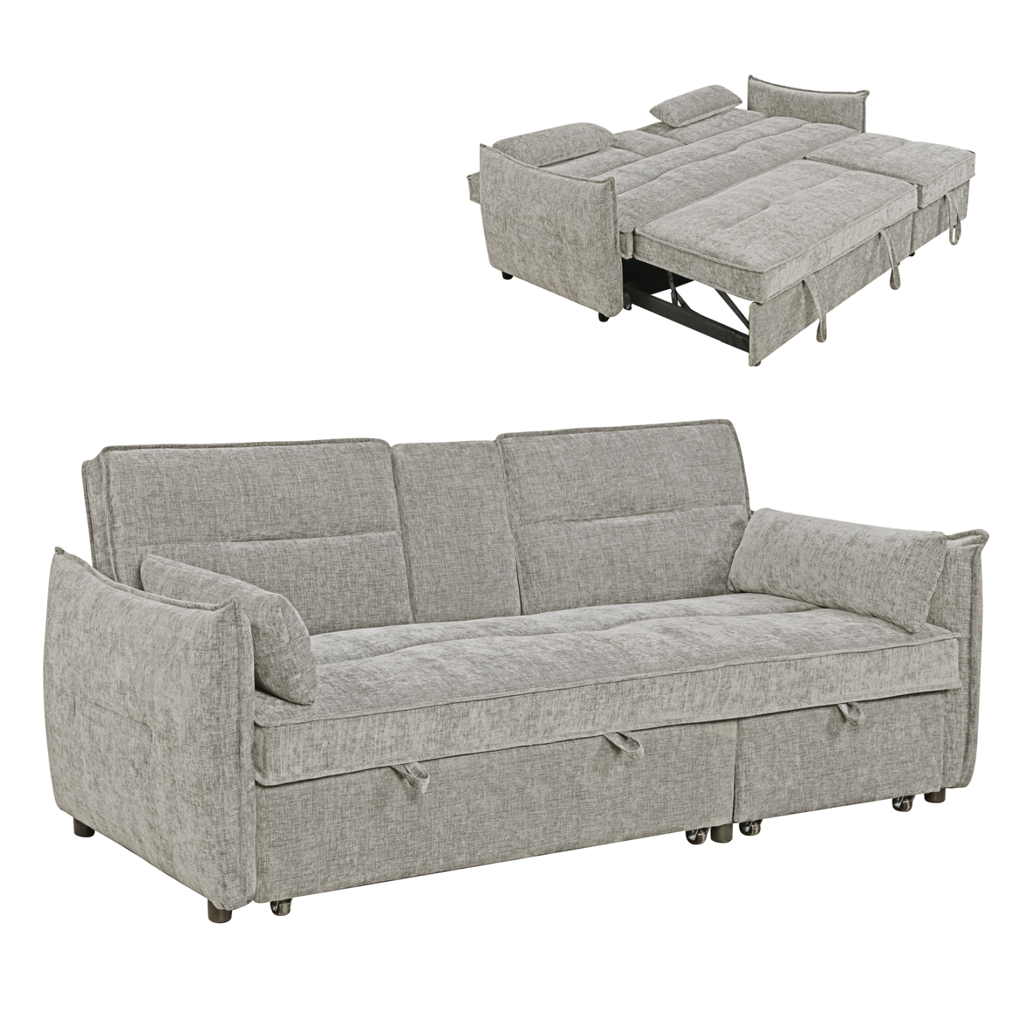 • Διπλός συρόμενος μηχανισμός: τα κρεβάτια τραβιούνται με ιμάντα κάτω από το κάθισμα.