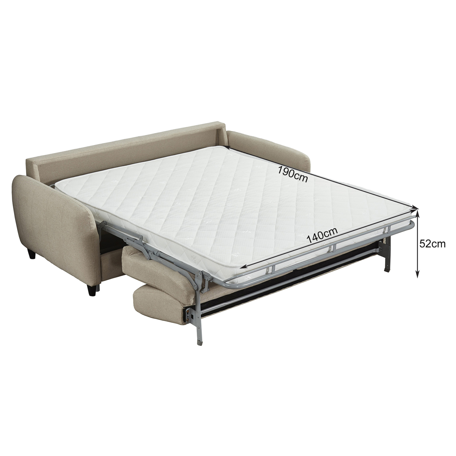 Ο μηχανισμός διαθέτει αναδιπλούμενο μεταλλικό σκελετό και ενσωματωμένο στρώμα, το οποίο ανοίγει με ομαλή κίνηση τραβώντας τον ειδικό ιμάντα που βρίσκεται πίσω από τα μαξιλάρια πλάτης. Τα μαξιλάρια και το κάθισμα σηκώνονται μαζί, καθώς είναι στερεωμένα πάνω στο μεταλλικό πλαίσιο του μηχανισμού.