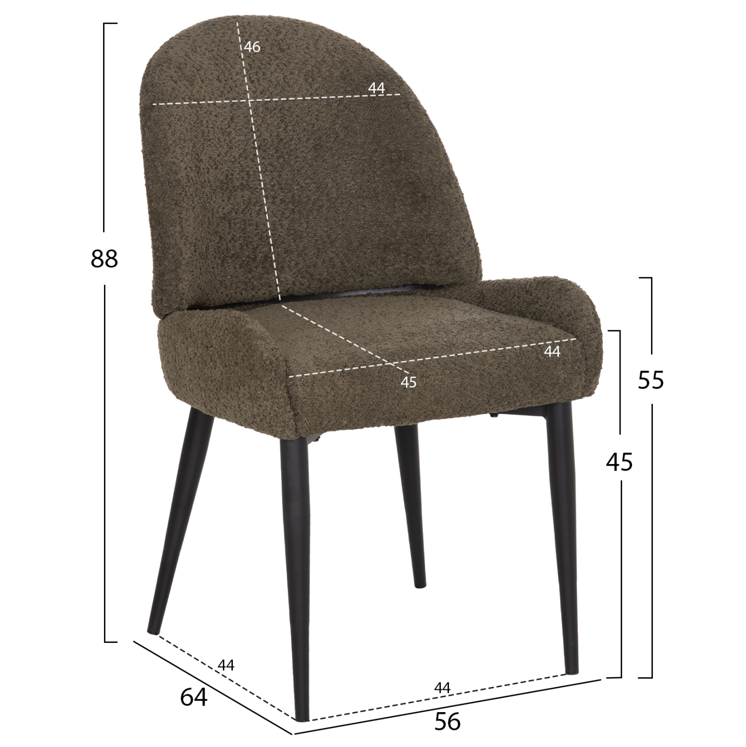 Η καρέκλα SARKY έχει κυρίαρχο χρώμα το ΠΡΑΣΙΝΟ, και 4 μαύρα μεταλλικά πόδια, ενώ η πλάτη είναι κυρτή αγκαλιάζοντας το σώμα. Η επένδυση της καρέκλας έχει γίνει με ζεστό ΜΠΟΥΚΛΕ ύφασμα που θα δώσει μια διαφορετική όψη στον χώρο σας. Πρόκειται για μια πρόταση όμορφη, κυρίως για την τραπεζαρία σας, αλλά και που θα ταιριάξει σχεδόν παντού!