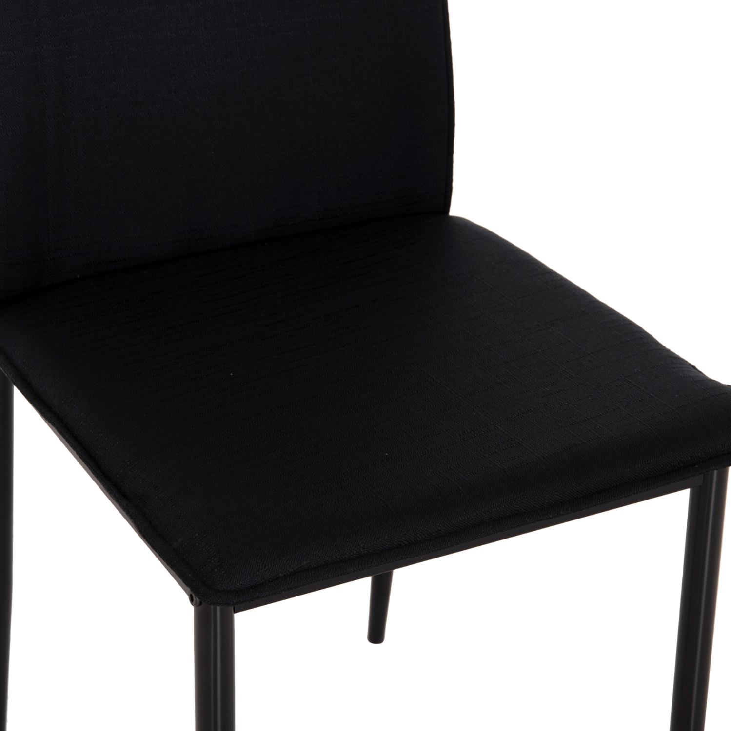 Η καρέκλα τραπεζαρίας PERKY συνδυάζει λιτή αισθητική και εργονομία, αποτελώντας μια σύγχρονη επιλογή για χώρους κουζίνας και τραπεζαρίας. Η επένδυση από ΜΑΥΡΟ ύφασμα προσφέρει άνεση και κομψότητα, ενώ τα στιβαρά μεταλλικά πόδια με μαύρη ηλεκτροστατική βαφή εξασφαλίζει σταθερότητα και μακροχρόνια αντοχή. Μια ιδανική πρόταση για σύγχρονα σπίτια, επαγγελματικούς χώρους ή airbnb.