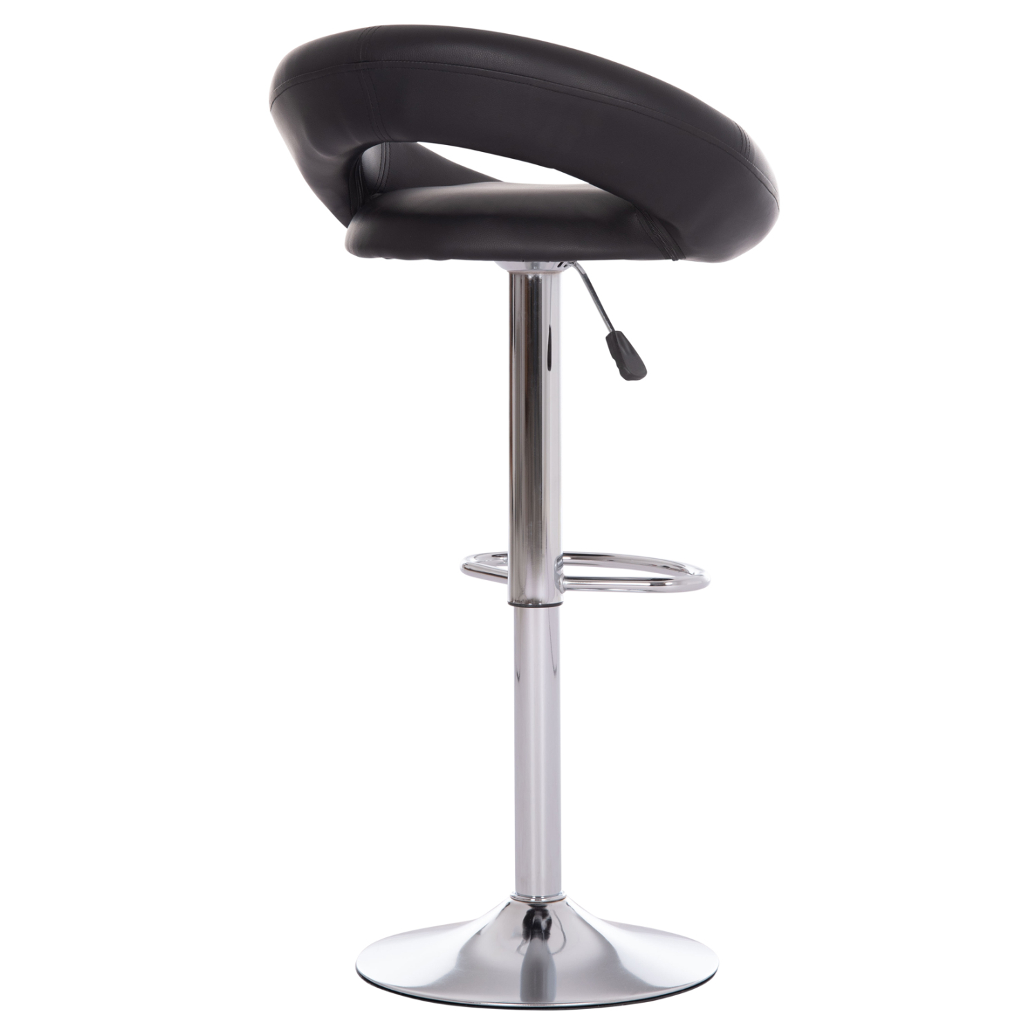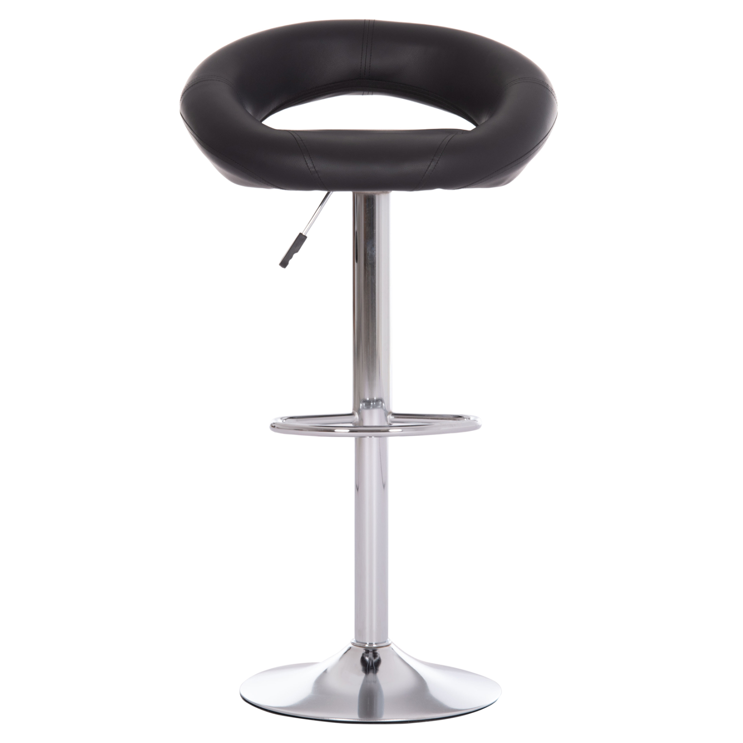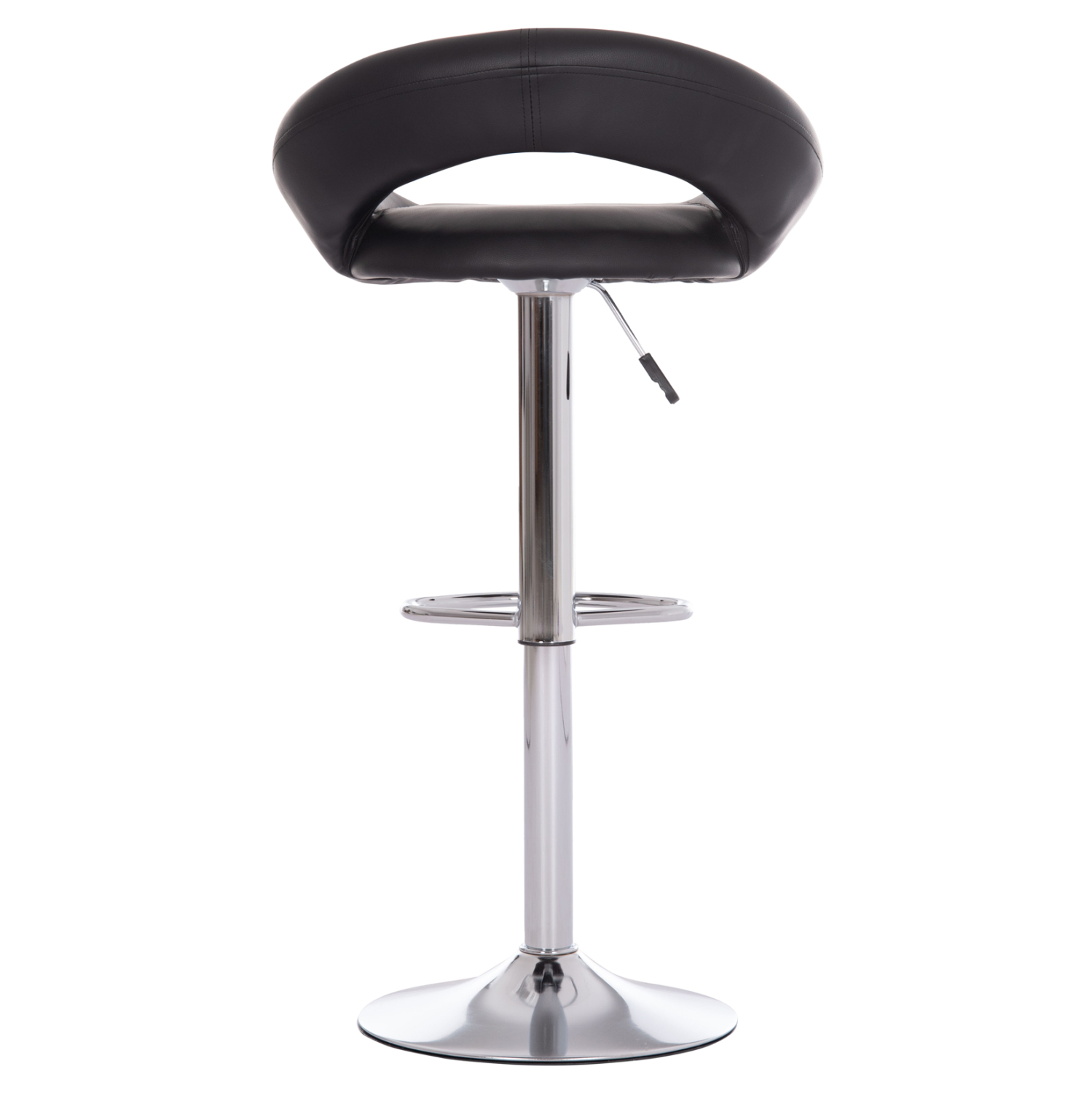 Το REA είναι ένα σκαμπό για μπαρ με ΜΑΥΡΟ PU, που έχει όλα όσα θα θέλατε από ένα τέτοιο έπιπλο. Είναι περιστρεφόμενο και ψηλό με μοντέρνα καμπυλωτή πλάτη. Η χρωμιωμένη μεταλλική κολώνα του σκαμπό διαθέτει και ημικυκλικό υποπόδιο ενώ καταλήγει σε έναν πανέμορφο φαρδύ δίσκο που παρέχει στήριξη και ισορροπία. Το ιδιαίτερο χαρακτηριστικό είναι η ύπαρξη αμορτισέρ για την ρύθμιση του ύψους του καθίσματος που γίνεται με έναν καλαίσθητο μοχλό κάτω από το κάθισμα.