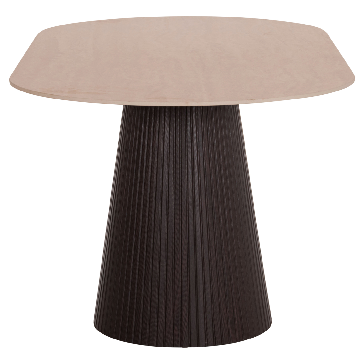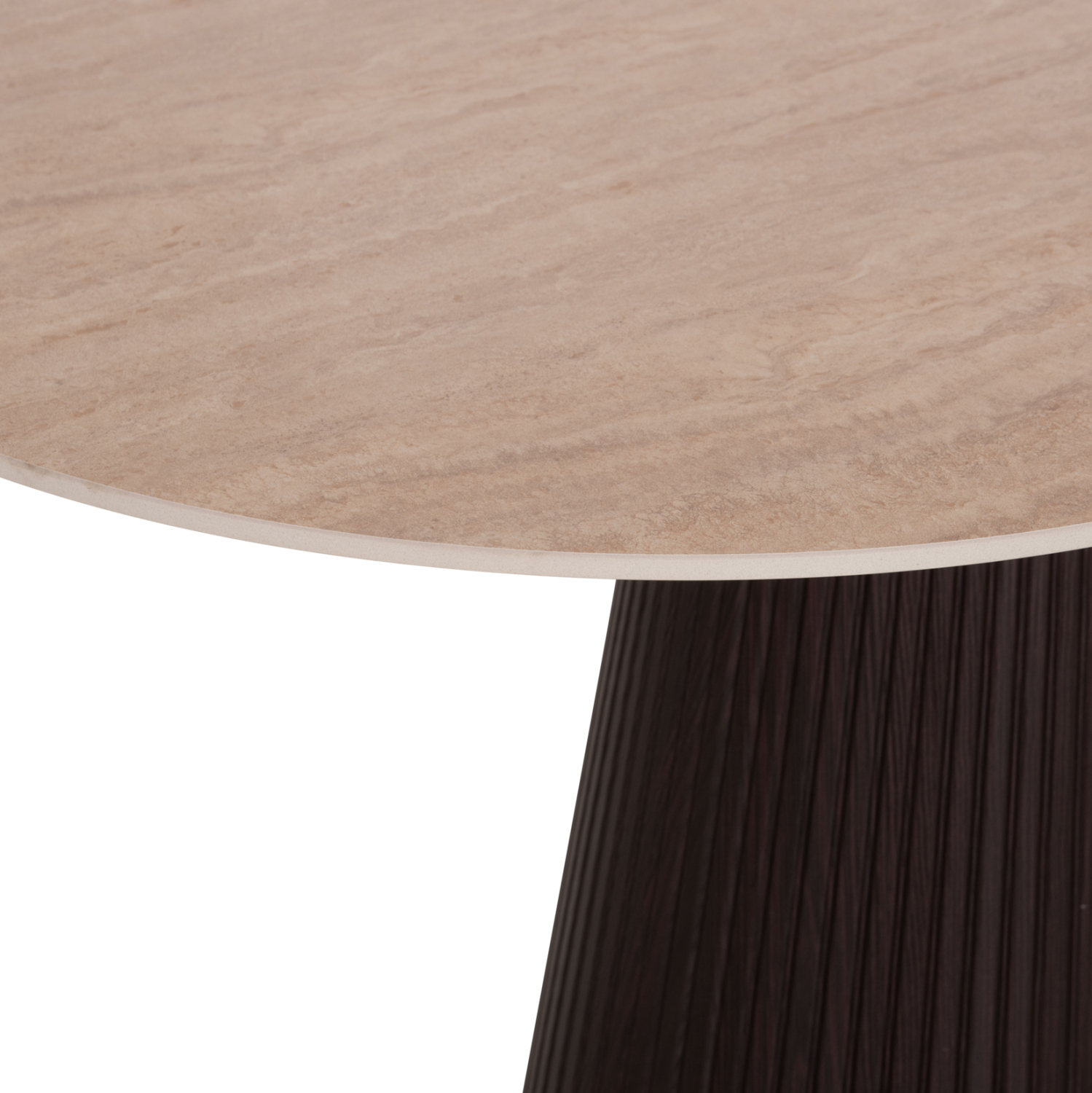 Το τραπέζι τραπεζαρίας CATER είναι οβάλ και αποτελεί νέα προσθήκη στην γκάμα μας. Η επίπεδη επιφάνειά του είναι κεραμική σε χρωματισμό TRAVERTINE STONE, ενώ η βάση του είναι κατασκευασμένη εξολοκλήρου από MDF σε χρώμα ΣΚΟΥΡΟ ΚΑΦΕ, με όμορφες πτυχώσεις.