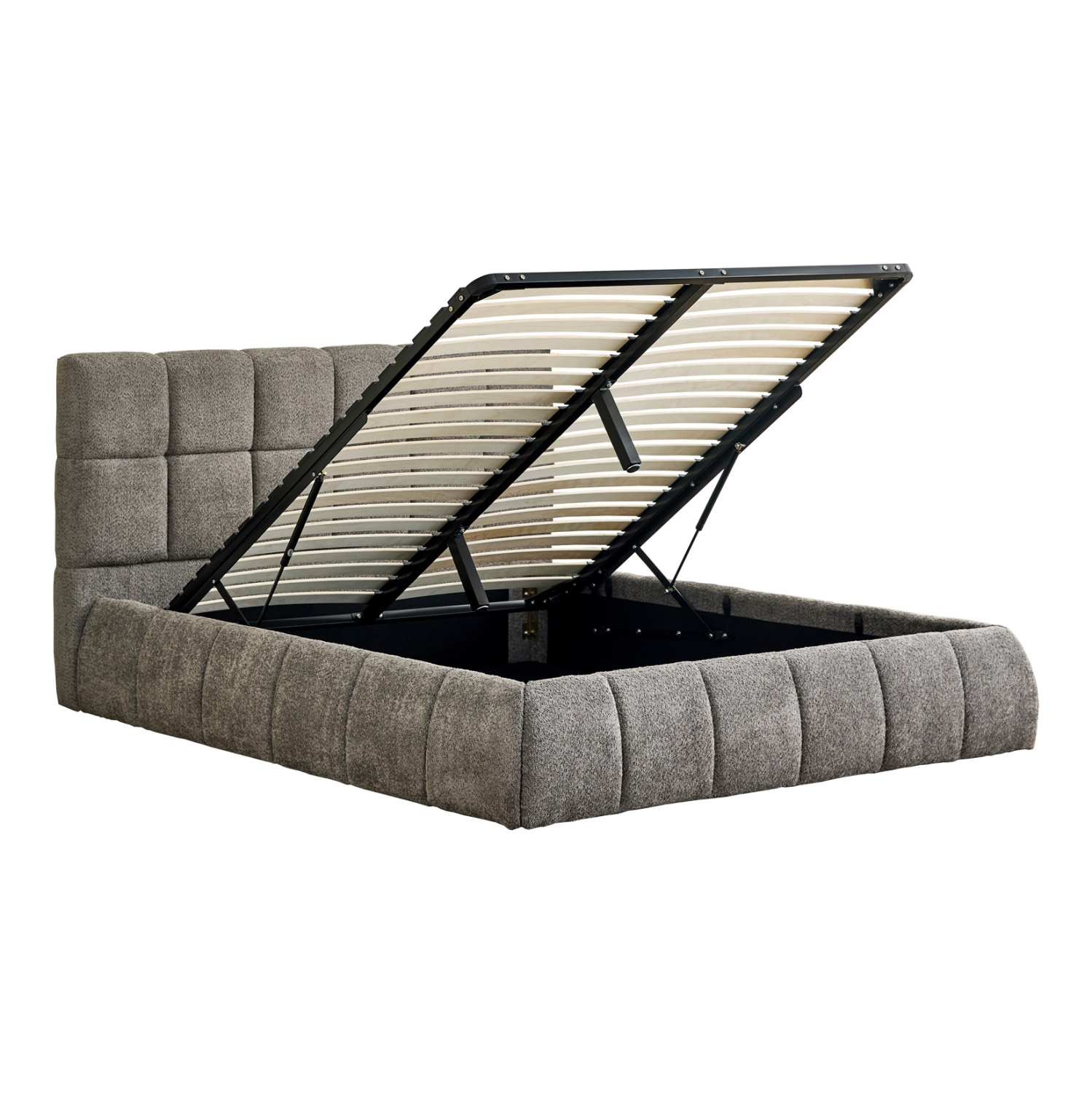 Το στρώμα στηρίζεται σε 20 σειρές εργονομικές τάβλες στήριξης, οι οποίες τοποθετούνται σε ένα μεταλλικό πλαίσιο που ανασηκώνεται με μηχανισμό ασφαλείας, προσφέροντας έναν μεγάλο αποθηκευτικό χώρο επενδυμένο επίσης με ύφασμα. Μια μοντέρνα πρόταση που θα ανανεώσει το υπνοδωμάτιό σας.
