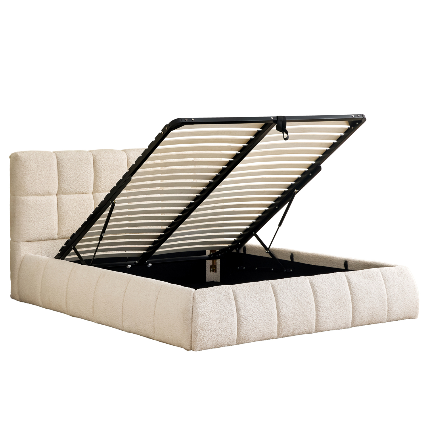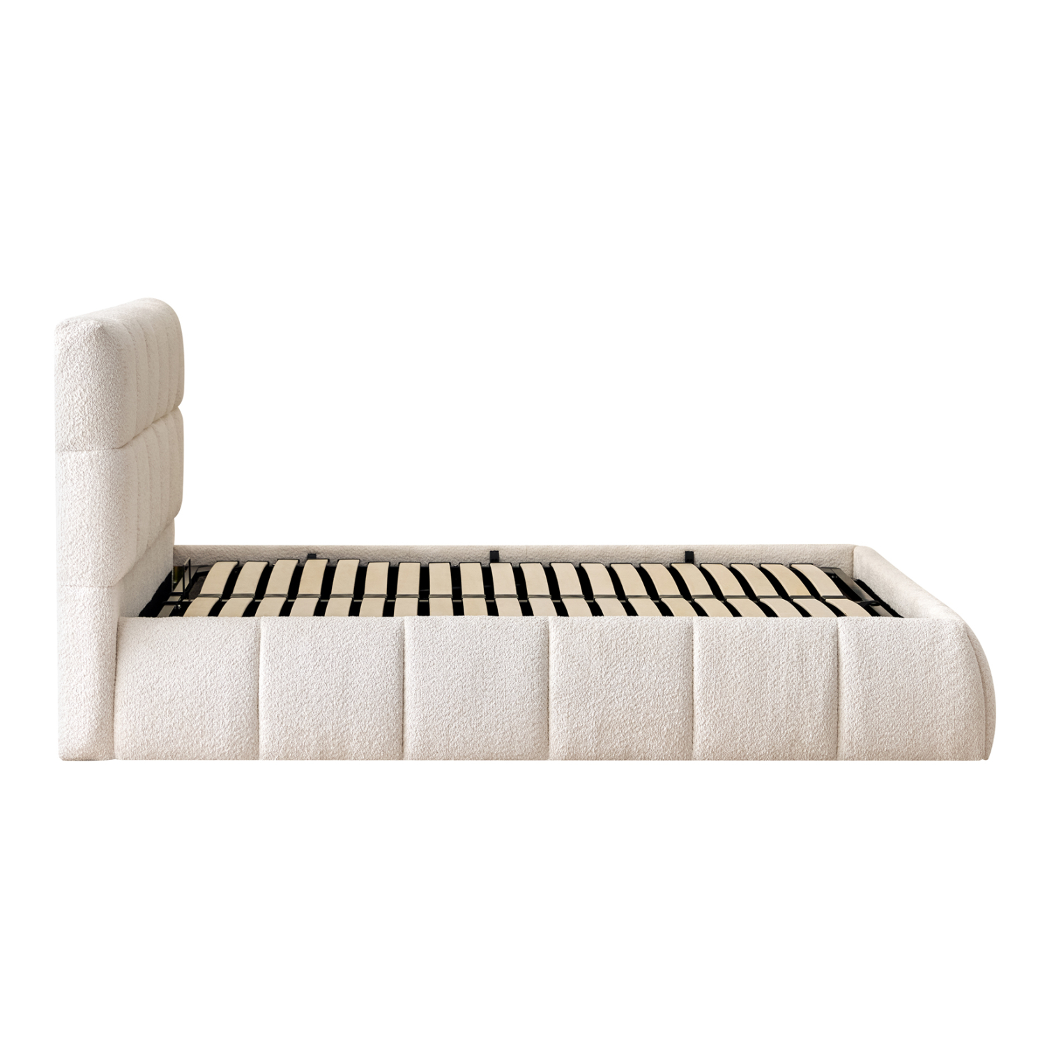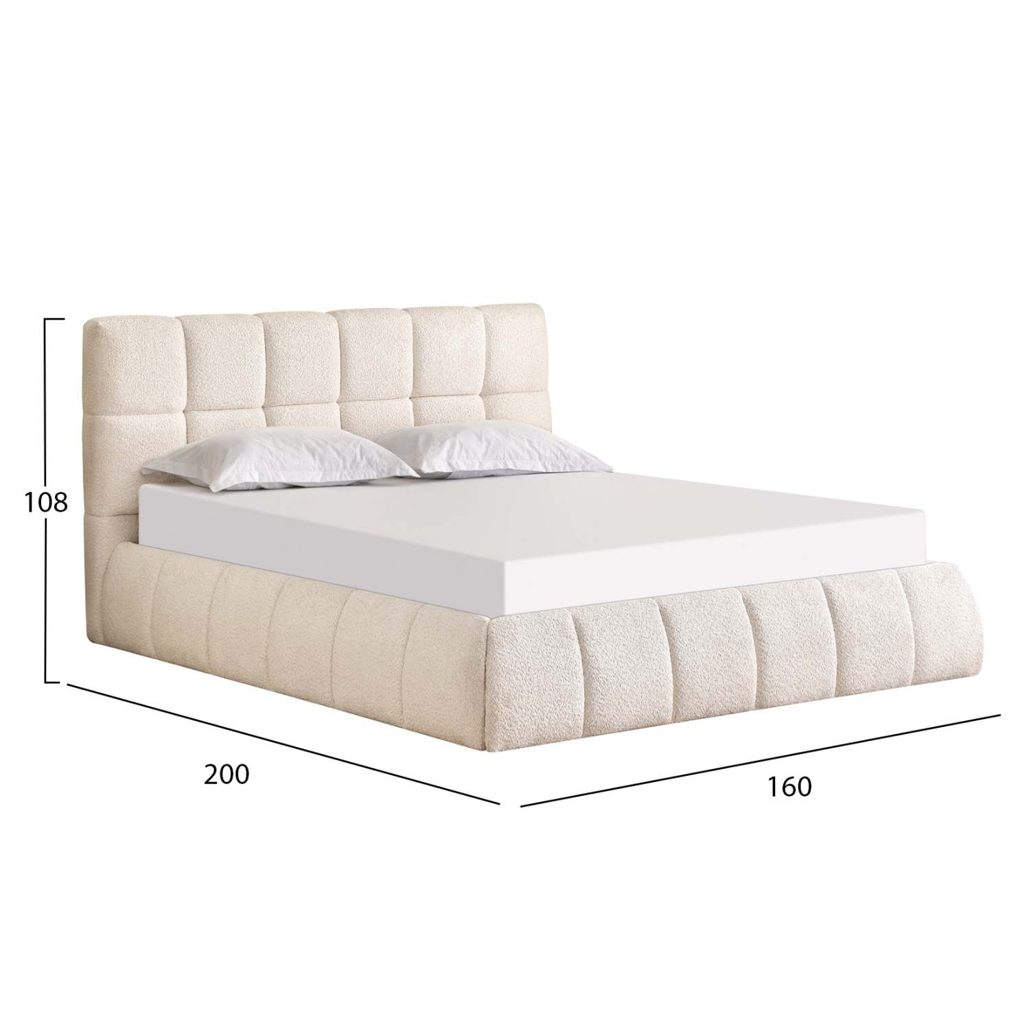 Το στρώμα στηρίζεται σε 20 σειρές εργονομικές τάβλες στήριξης, οι οποίες τοποθετούνται σε ένα μεταλλικό πλαίσιο που ανασηκώνεται με μηχανισμό ασφαλείας, προσφέροντας έναν μεγάλο αποθηκευτικό χώρο επενδυμένο επίσης με ύφασμα. Μια μοντέρνα πρόταση που θα ανανεώσει το υπνοδωμάτιό σας.