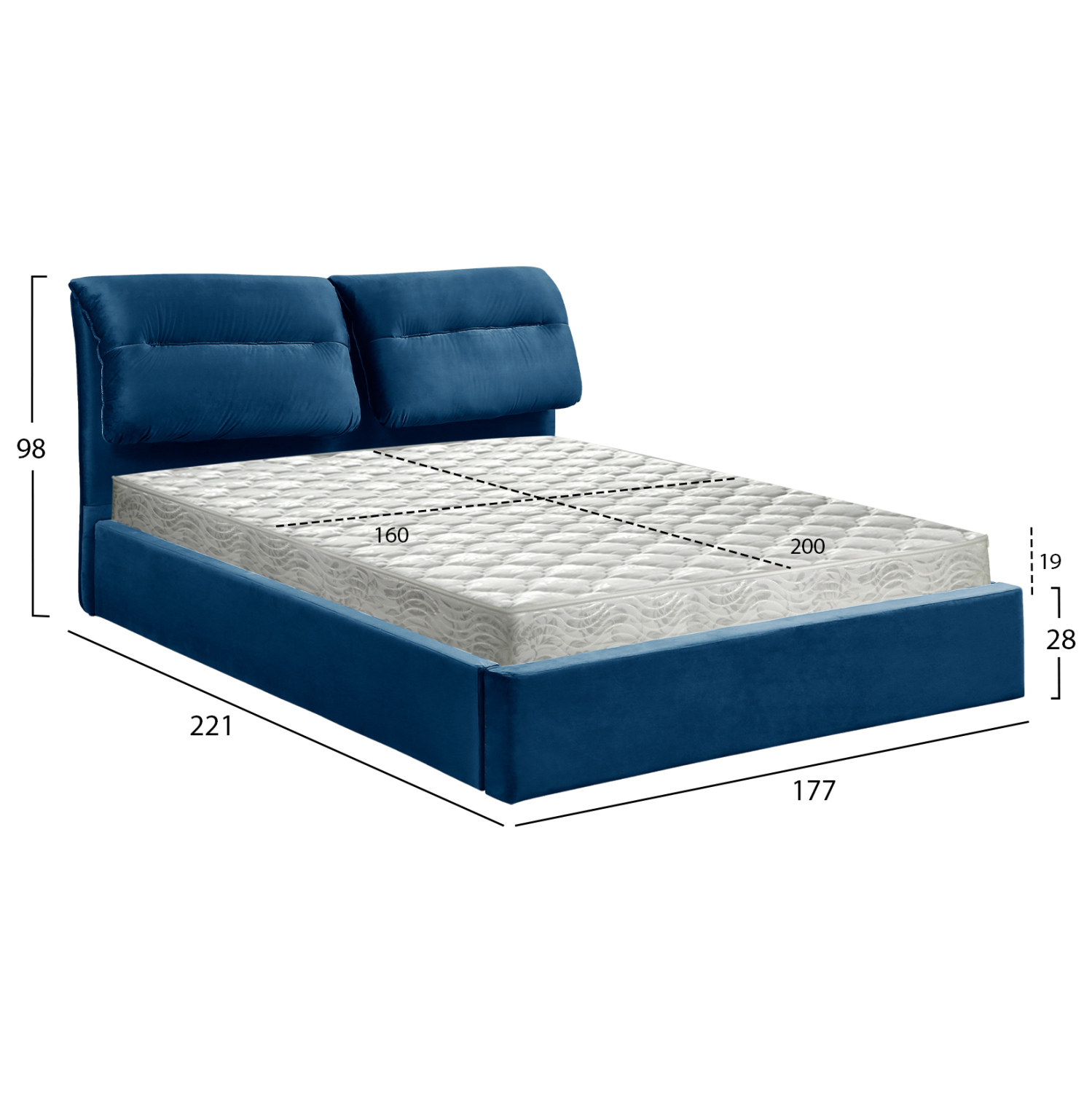 ΚΡΕΒΑΤΙ ΔΙΠΛΟ & ΣΤΡΩΜΑ KENDRA HM10720.18 ΜΠΛΕ ΒΕΛΟΥΔΟ–ΑΠΟΘ.ΧΩΡΟΣ–160×200εκ