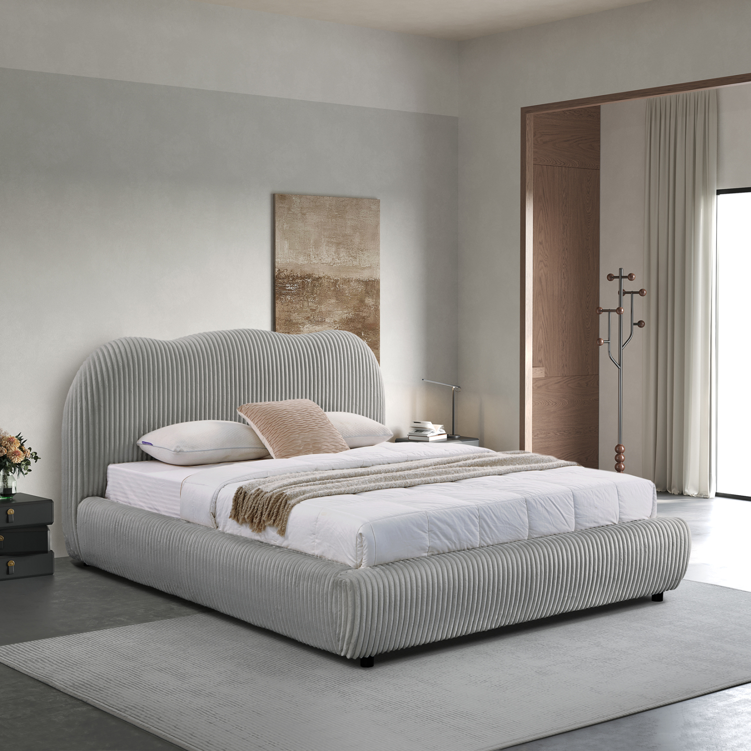 Το διπλό κρεβάτι KALLY για στρώμα 160×200εκ είναι νέα προσθήκη στην γκάμα μας. Ξεχωρίζει για την όμορφη επένδυση με ύφασμα συνθετικής γούνας (feaux fur) με κάθετες ρίγες σε ουδέτερο ΓΚΡΙ χρώμα.