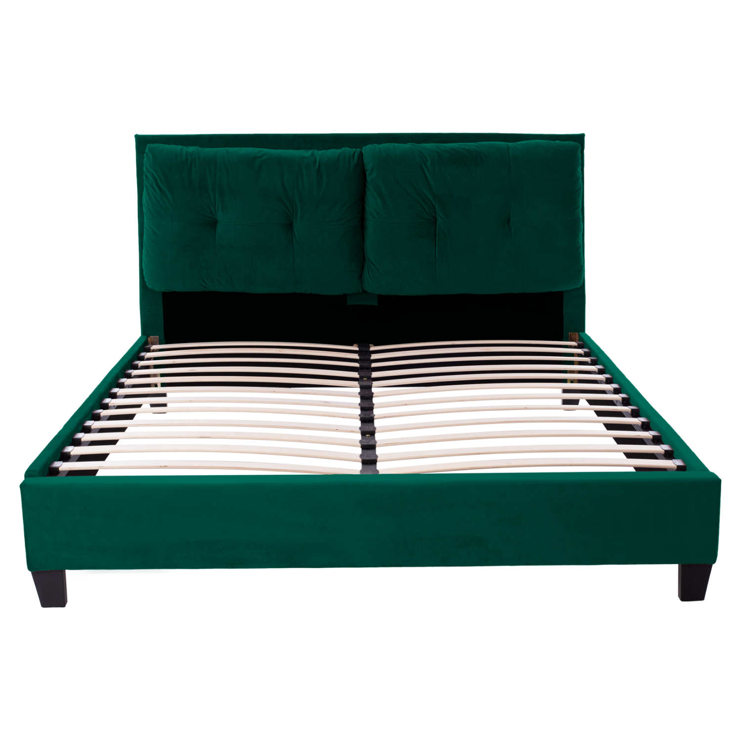 Το υπέρδιπλο κρεβάτι BILLIE είναι επενδυμένο με όμορφο βελούδο σε ΚΥΠΑΡΙΣΣΙ χρώμα με δύο καπιτονέ μαξιλάρια στο κεφαλάρι. Το στρώμα που συνοδεύει το κρεβάτι τοποθετείται σε δύο σειρές ανατομικές τάβλες, είναι μονής όψης και είναι τεχνολογίας continuous spring με ενσωματωμένο ανώστρωμα pillow-top. Τα πόδια είναι σχετικά ψηλά από πολυπροπυλένιο σε μαύρο χρώμα.