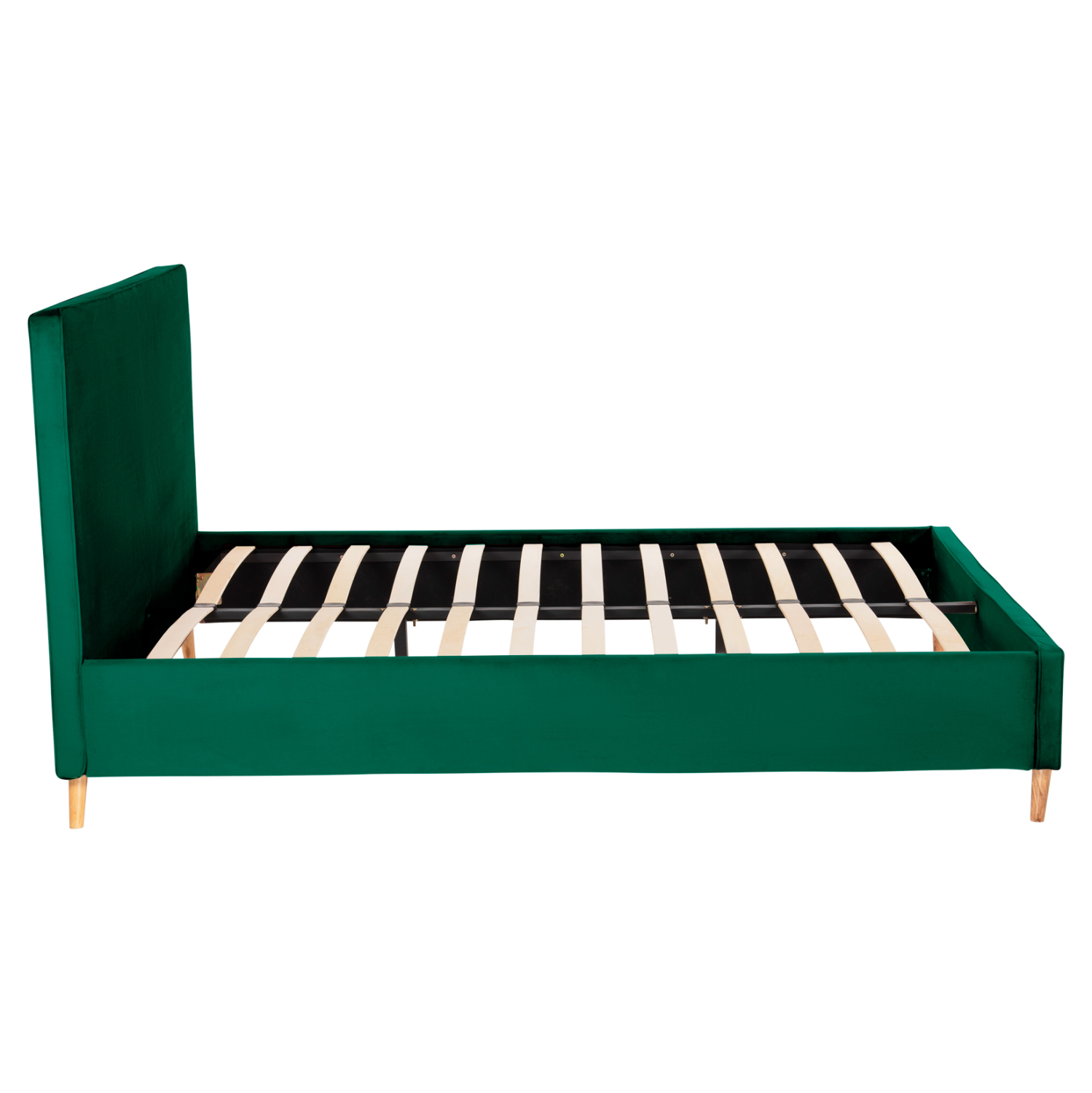 Το υπέρδιπλο κρεβάτι INDRA είναι επενδυμένο με βελούδο σε χρώμα ΚΥΠΑΡΙΣΣΙ με ίδιο ρέλι στις ραφές. Το στρώμα που συνοδεύει το κρεβάτι τοποθετείται σε δύο σειρές ανατομικές τάβλες, είναι διπλής όψης και έχει τεχνολογία με pocket springs (ανεξάρτητα ελατήρια). Τα πόδια είναι ξύλινα σε φυσικό χρώμα.