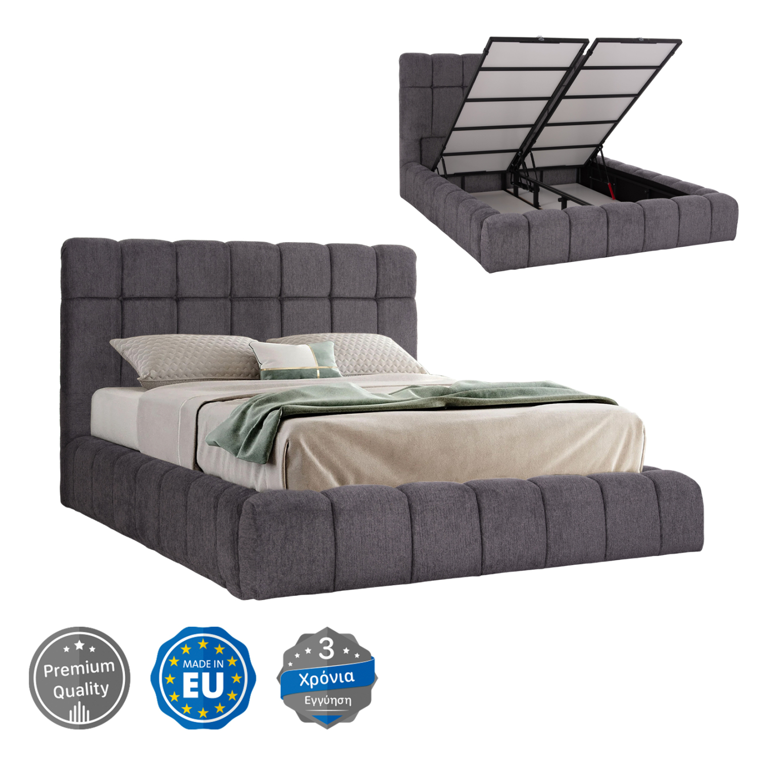 ΚΡΕΒΑΤΙ RAMON ΜΕ ΑΠΟΘ. ΧΩΡΟ HM720.22 ΥΦΑΣΜΑ TEDDY ΓΚΡΙ-ΓΙΑ ΣΤΡΩΜΑ 160×200εκ