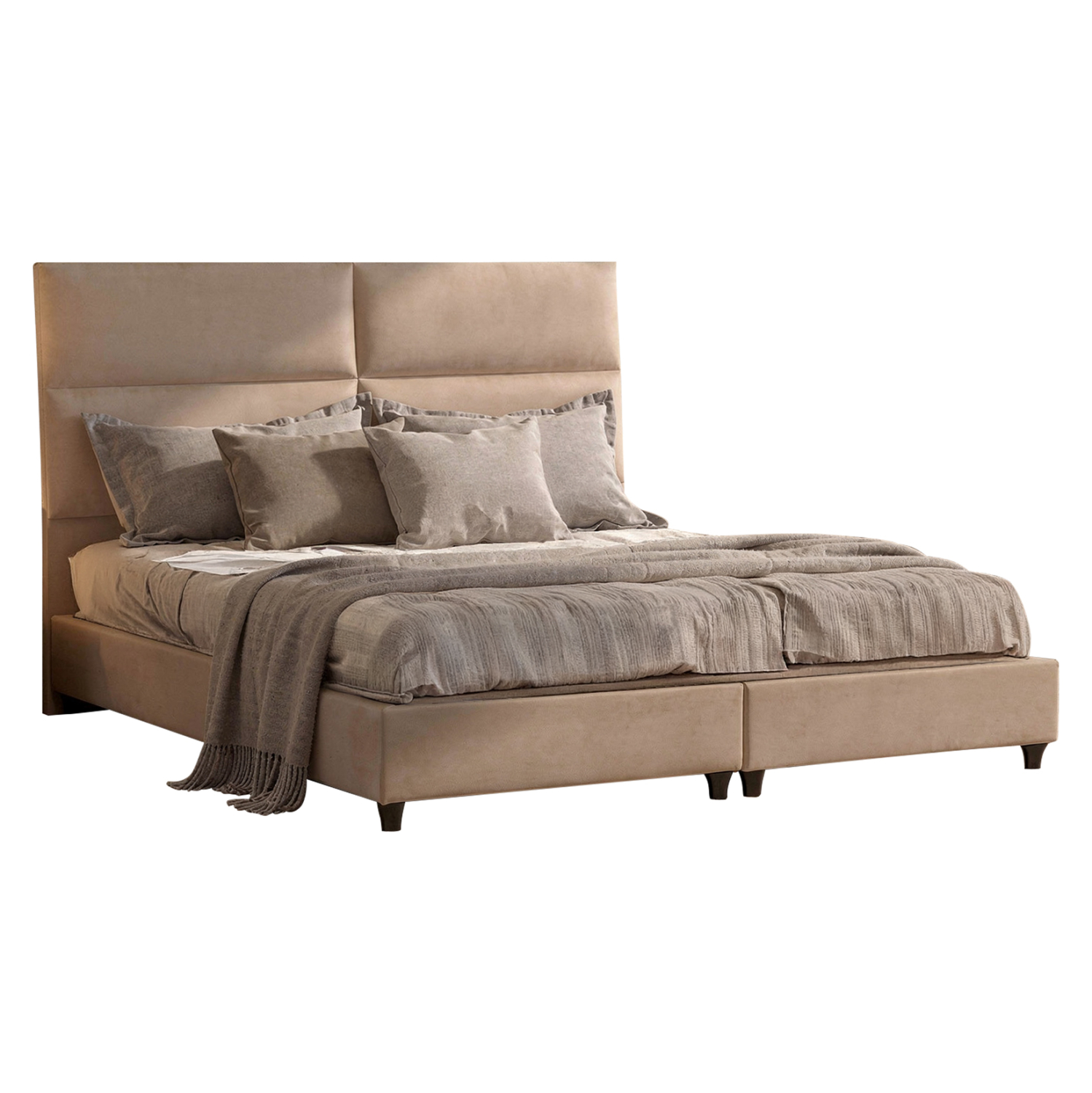 Το κρεβάτι MILO έχει ψηλό κεφαλάρι, επενδυμένο με καπιτονέ τεχνοτροπία σε μεγάλα ορθογώνια, ενώ όλη η επένδυση του κρεβατιού είναι από ποιοτικό ύφασμα σε ΣΚΟΥΡΟ ΜΠΕΖ χρώμα. Όμως, το κύριο χαρακτηριστικό αυτού του κρεβατιού είναι ότι δεν ακολουθεί την κλασική κατασκευή με τις τάβλες του σομιέ για την στήριξη του στρώματος, αλλά αντίθετα αποτελείται από μια συνεχόμενη επιφάνεια (2 μοριοσανίδες) πάνω στην οποία τοποθετείται το στρώμα! Σε King Size διαστάσεις στρώματος 180×200 εκ. θα χωρέσει κάθε σας όνειρο!