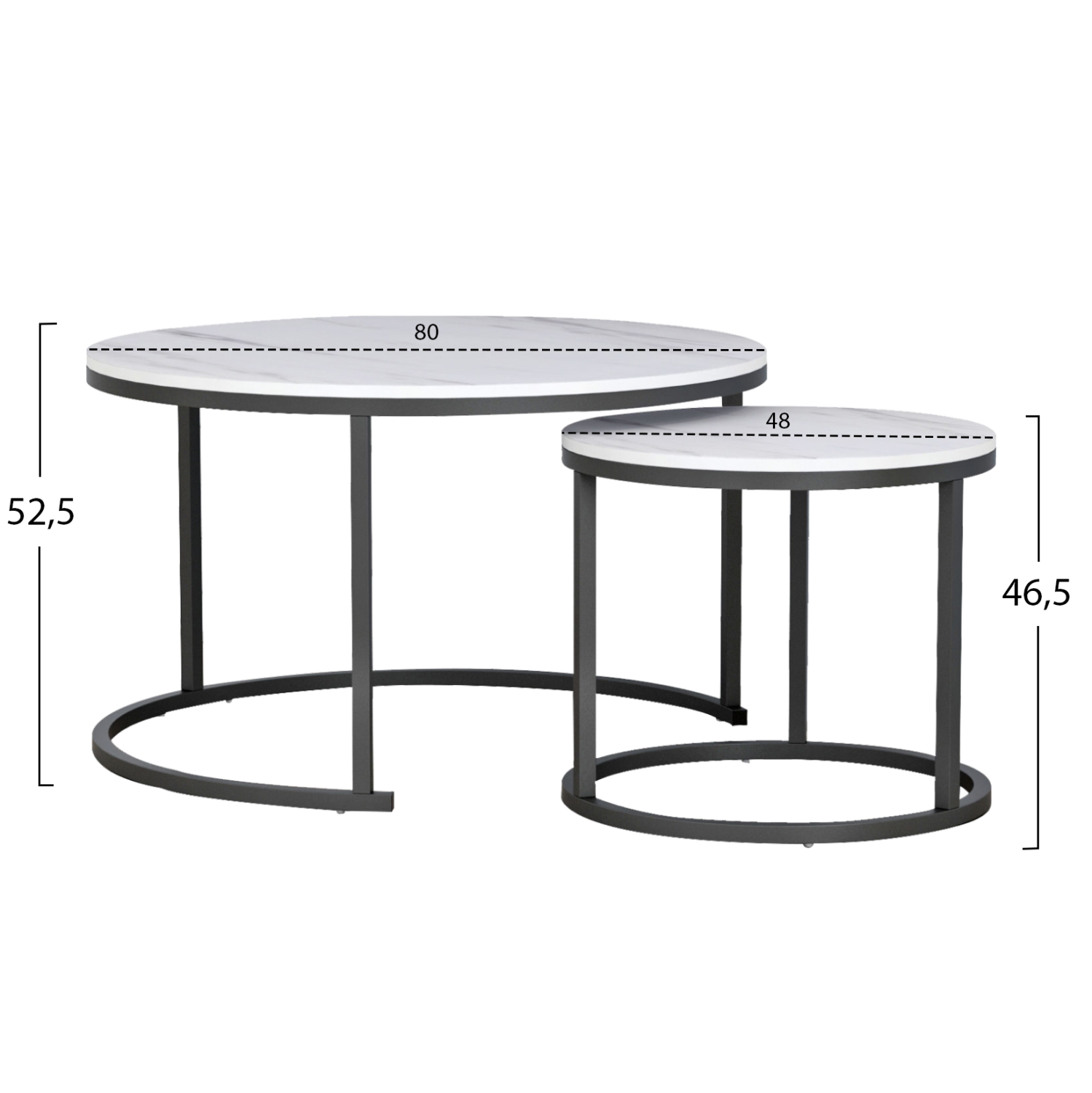 Hm8763.12- Σετ 2 τραπεζάκια σε στυλ ζιγκόν με μεταλλικές βάσεις και επιφάνειες mdf σε χρώμα ΛΕΥΚΟ ΜΑΡΜΑΡΟ.