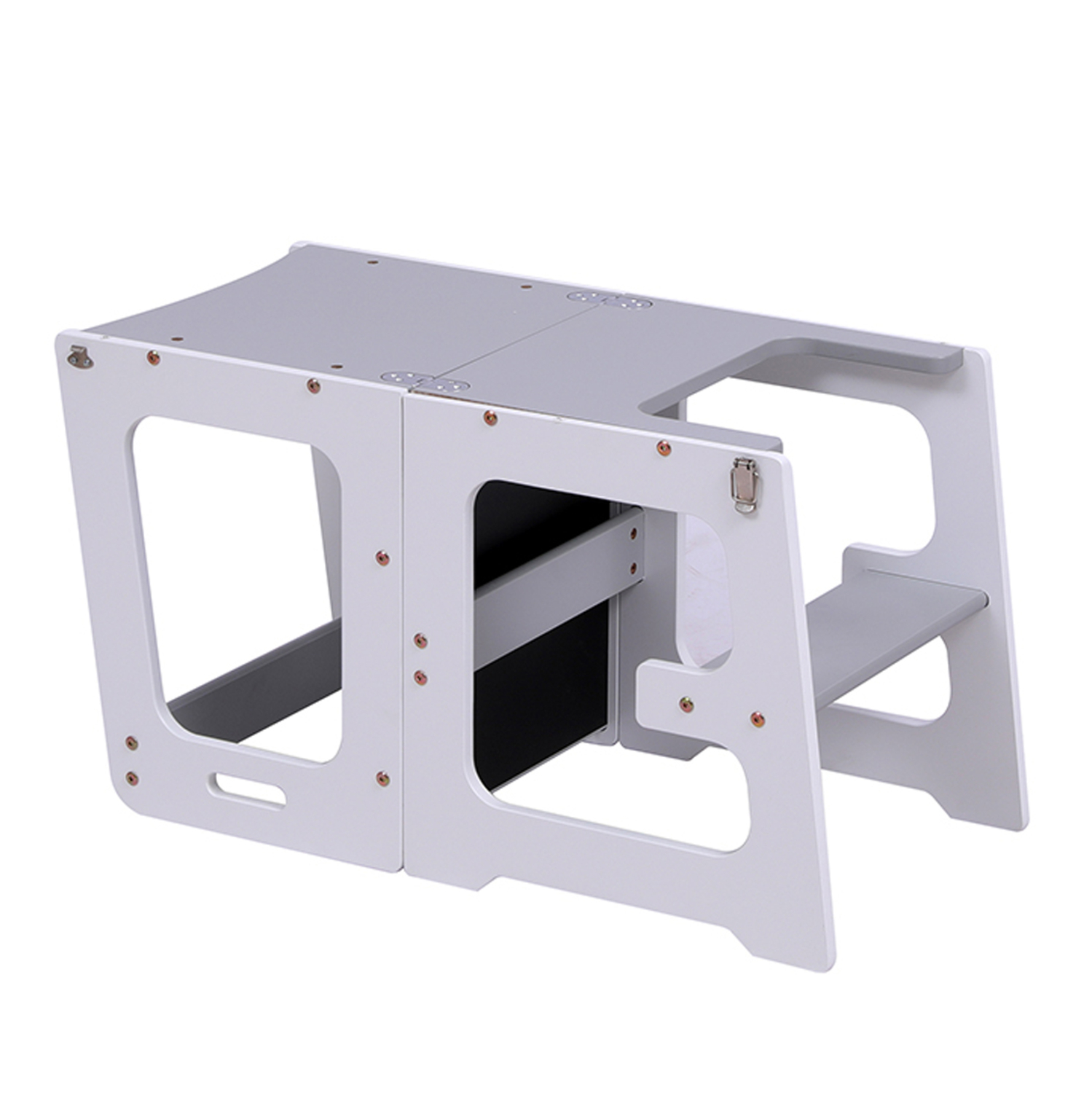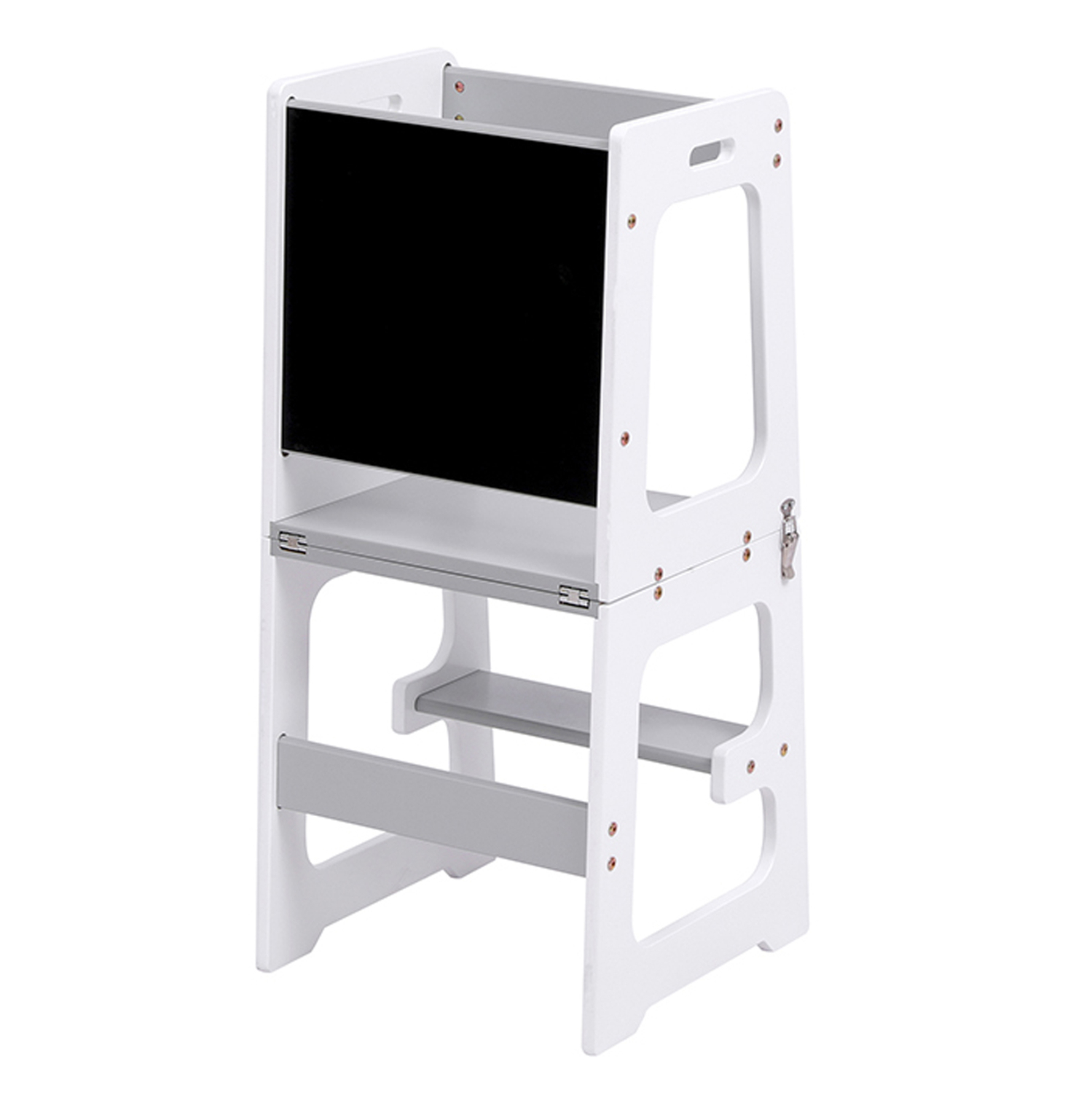 Η ενσωματωμένη επιφάνεια μαυροπίνακα μετατρέπει τον πύργο σε έναν μικρό δημιουργικό χώρο, ενισχύοντας τη φαντασία και τη μάθηση μέσα από το παιχνίδι.