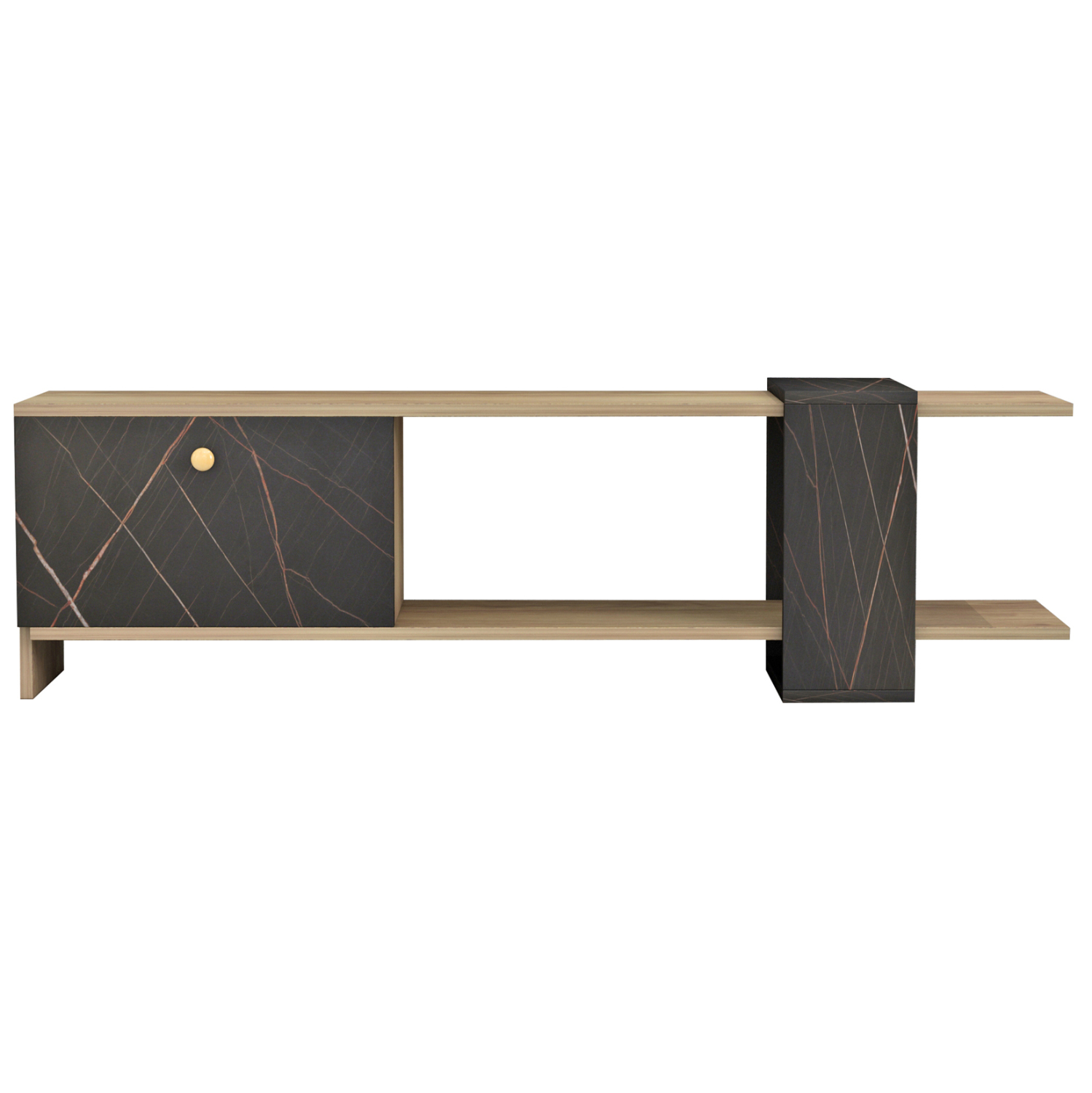 ΕΠΙΠΛΟ ΤΗΛΕΟΡΑΣΗΣ HENRIETTE HM8900.12 ΜΕΛΑΜΙΝΗ ΣΕ ΦΥΣΙΚΟ-ΜΑΥΡΟ ΜΑΡΜΑΡΟ 120×28,5×37,5Υεκ.