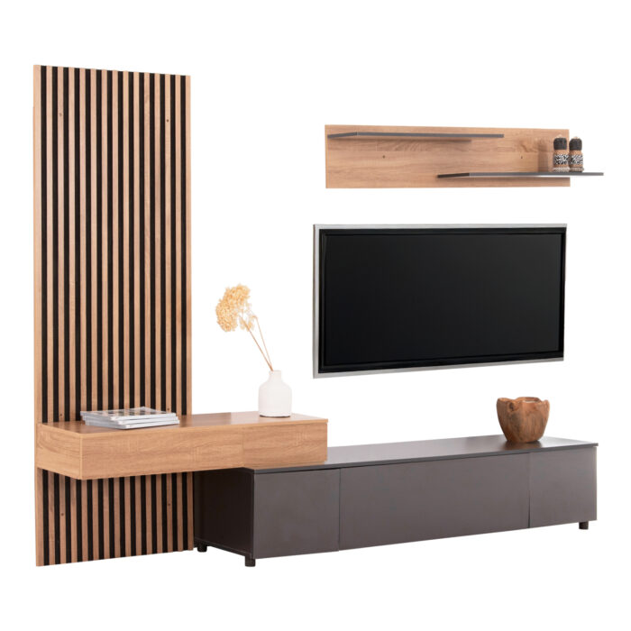 ΣΥΝΘΕΣΗ ΤΗΛΕΟΡΑΣΗΣ DORT HM18076.02 ΜΕΛΑΜΙΝΗ ΣΕ ΣΟΝΑΜΑ-ΣΚΟΥΡΟ ΓΚΡΙ 249.5×42.2×199.5Υεκ