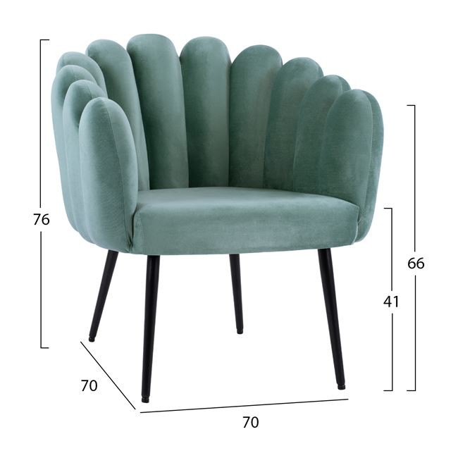 Η πολυθρόνα VIVIEN είναι ξεχωριστή! Μοντέρνα, άνετη και σταθερή! Το κυρίαρχο χρώμα είναι το απαλό ΦΙΣΤΙΚΙ, ενώ τα 4 πόδια είναι σε μαύρο χρώμα. Το ημικυκλικό design της πολυθρόνας είναι άνετο και αποτελείται από 11 κάθετα βελούδινα «δάχτυλα» που της δίνουν αυτή την πολύ ιδιαίτερη όψη, ενώ η πολυθρόνα δίνει την αίσθηση ότι αγκαλιάζει το σώμα. Πρόκειται για μια πρόταση λιτή που θα ταιριάξει σχεδόν παντού!